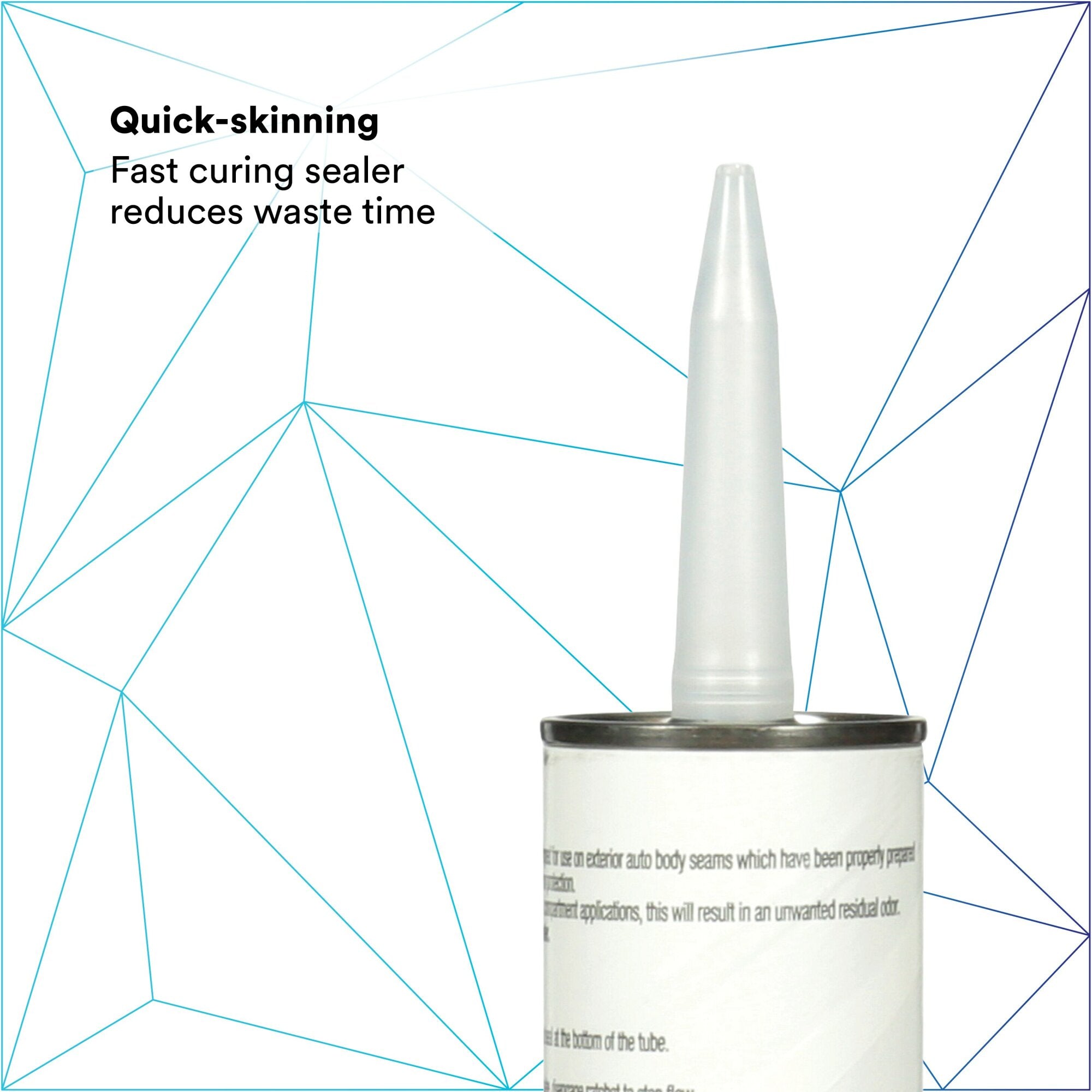 When both fast action and quality results are important, 3M™ Fast 'N Firm Seam Sealer is a preferred choice. This firm setting product can seal a variety of external automotive joints and seams. With its high solids and low shrinkage properties, our sealer provides predictable and reliable results. You'll have a work time ranging from 5 to 10 minutes. It quickly skins and cures quickly. In fact, it cures so quickly that you can often paint in as few as 45 minutes, so there is less downtime in waiting for the sealer to fully cure.