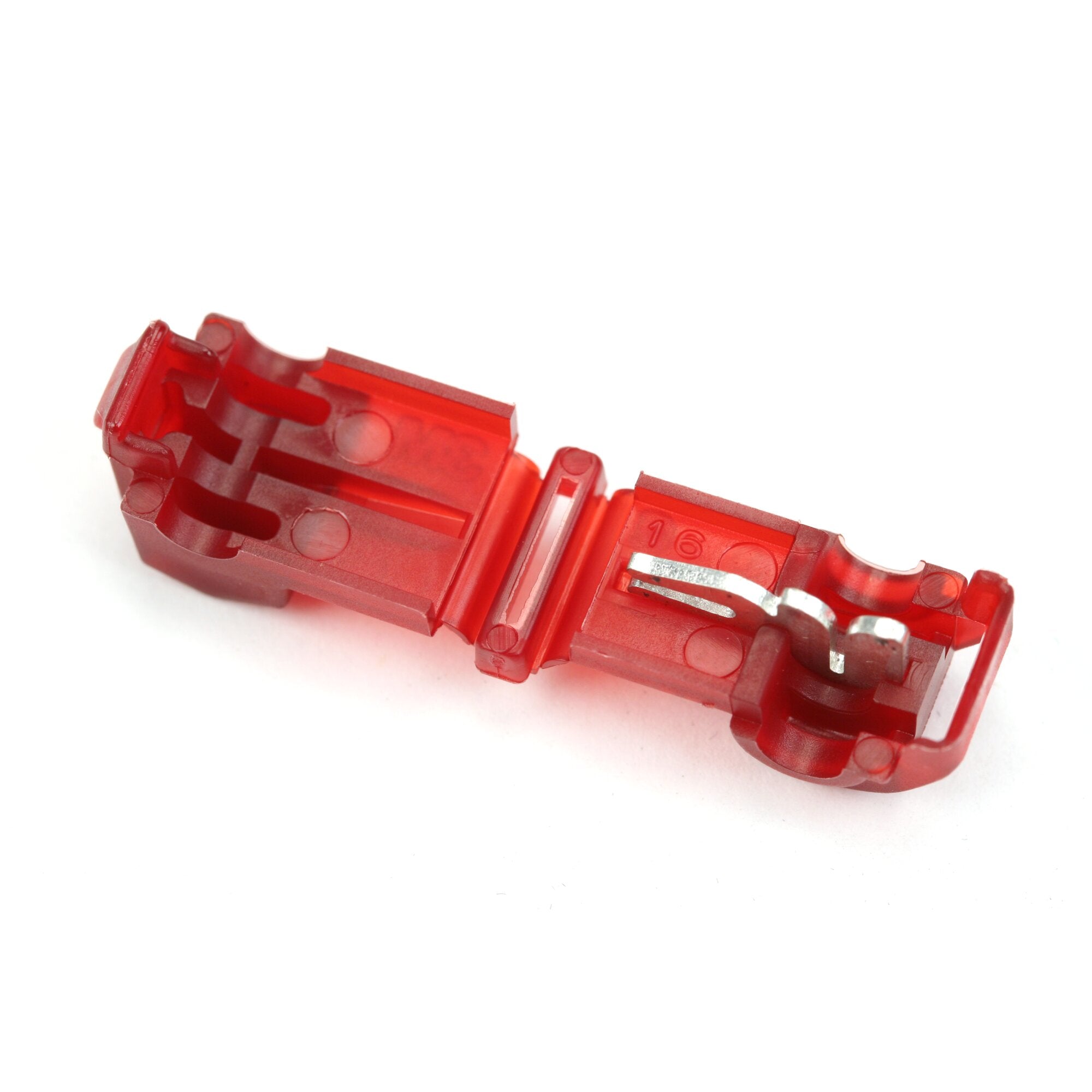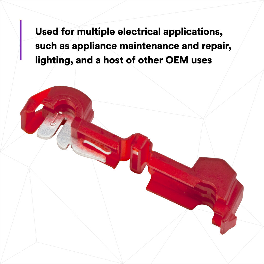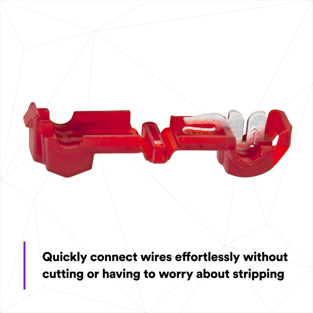 - Nylon-insulated connector electrically taps into a wire in mid-span without cutting