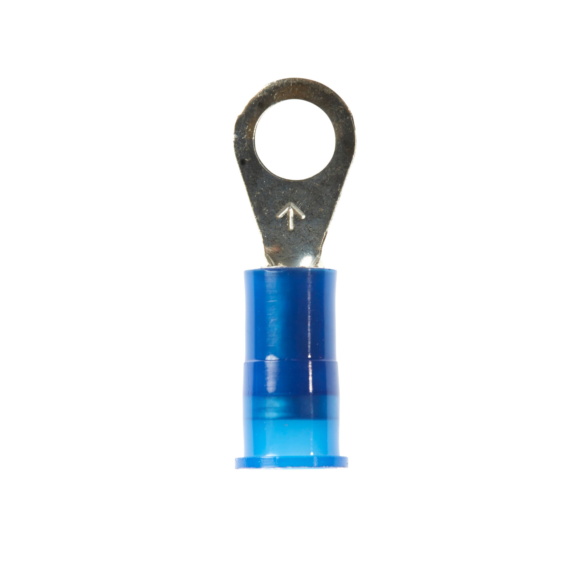 Safe and reliable, 3M Scotchlok Color-Coded Large Ring Tongue Terminals are made of electrolytic copper for great conductivity and coated in tin to resist corrosion. The butted-seam barrels are insulated with nylon and covered with seamless brass sleeves for accurate wire positioning. These terminals work in temperatures ranging from -40 to 221 degrees F (-40 to 105 degrees C).3M™ Ring Tongue Terminal is color-coded for quick and easy identification of the wire size required. The butted-seam barrel is covered by a funnel-designed, seamless brass sleeve to guide the wire into position. The abrasion-resistant, flared, nylon-sleeve insulation ensures a positive grip and has a stepped design for mistake-proof crimping. UL Listed, CSA Certified and RoHS 2011/65/EU Compliant.
