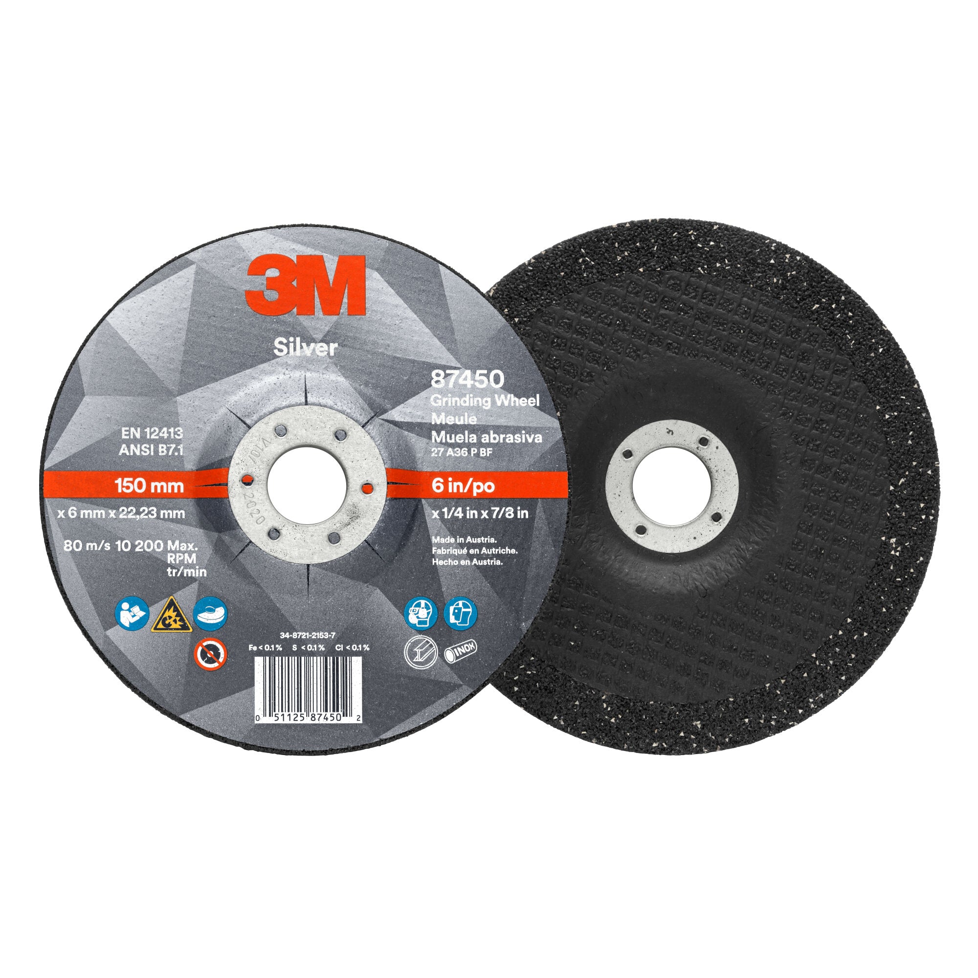 3M Silver Depressed Center Grinding Wheel, 87450, T27, 6 in x 1/4 in x7/8 in