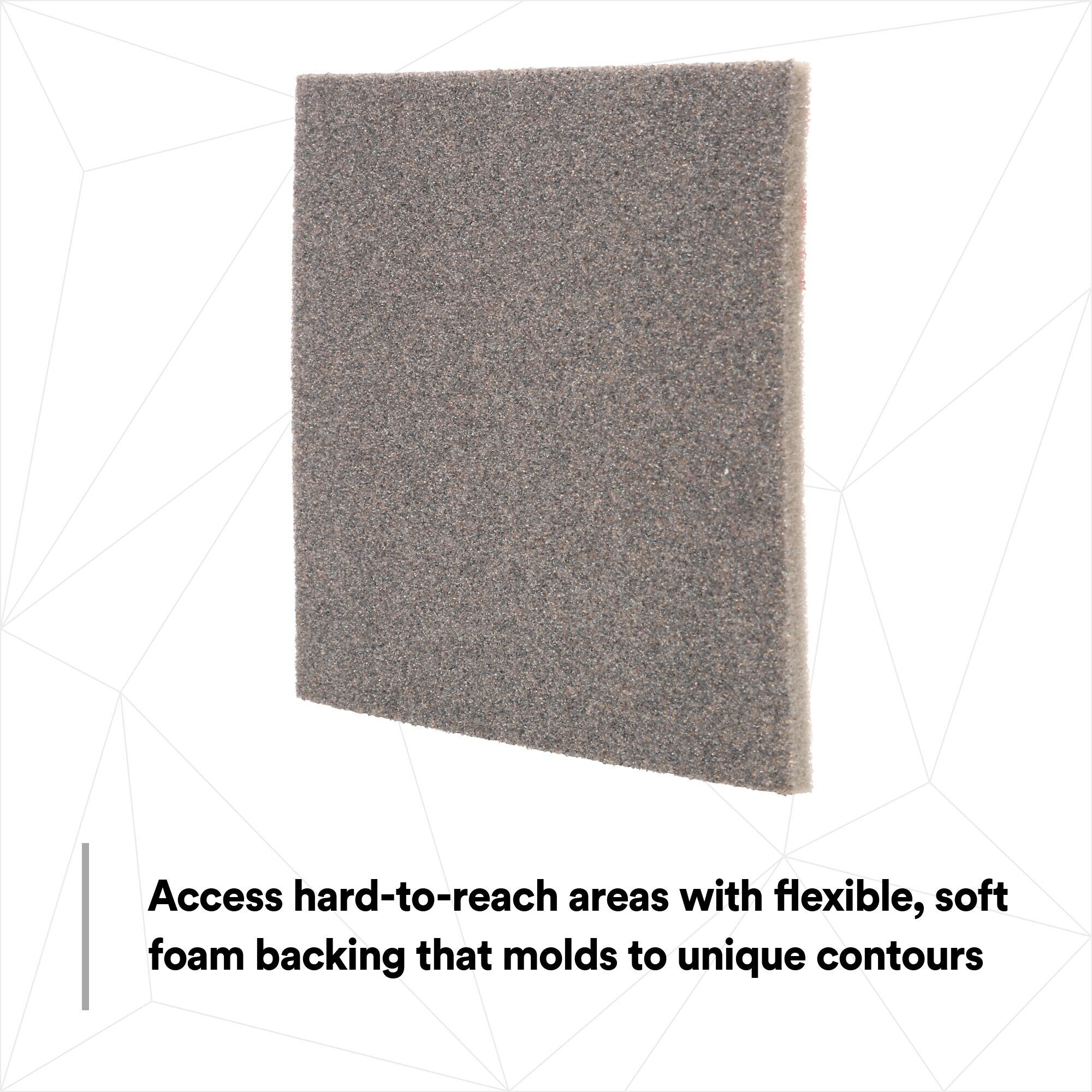 • Flexible foam backing adapts to unique contours and access hard-to-reach areas