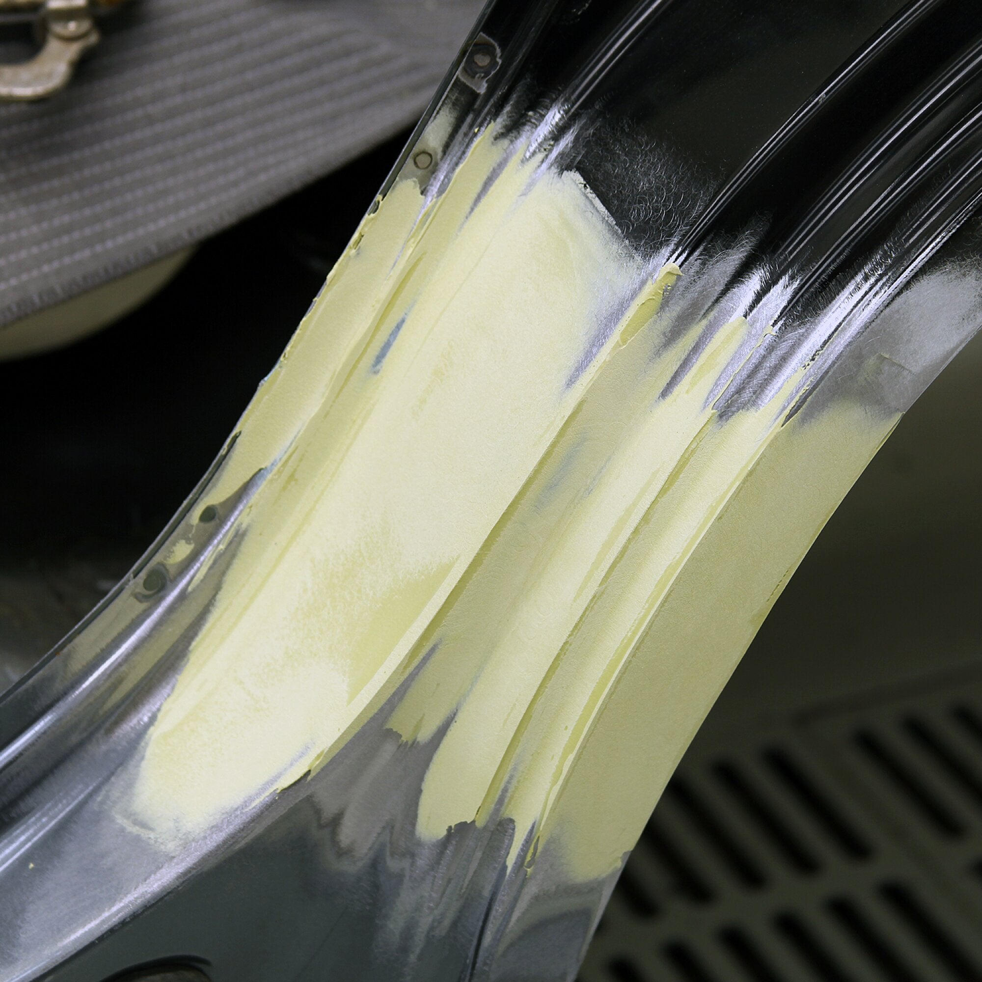 3M™ Dry Guide Coat is used in the dry primer sanding process to identify surface imperfections such as pinholes and deep scratches in primer. When sanding polyester filler, it ensures the filler is flat with no ripples and that the body styling lines and contours are straight and correct. It also ensures the total primed area is sanded prior to top coating.