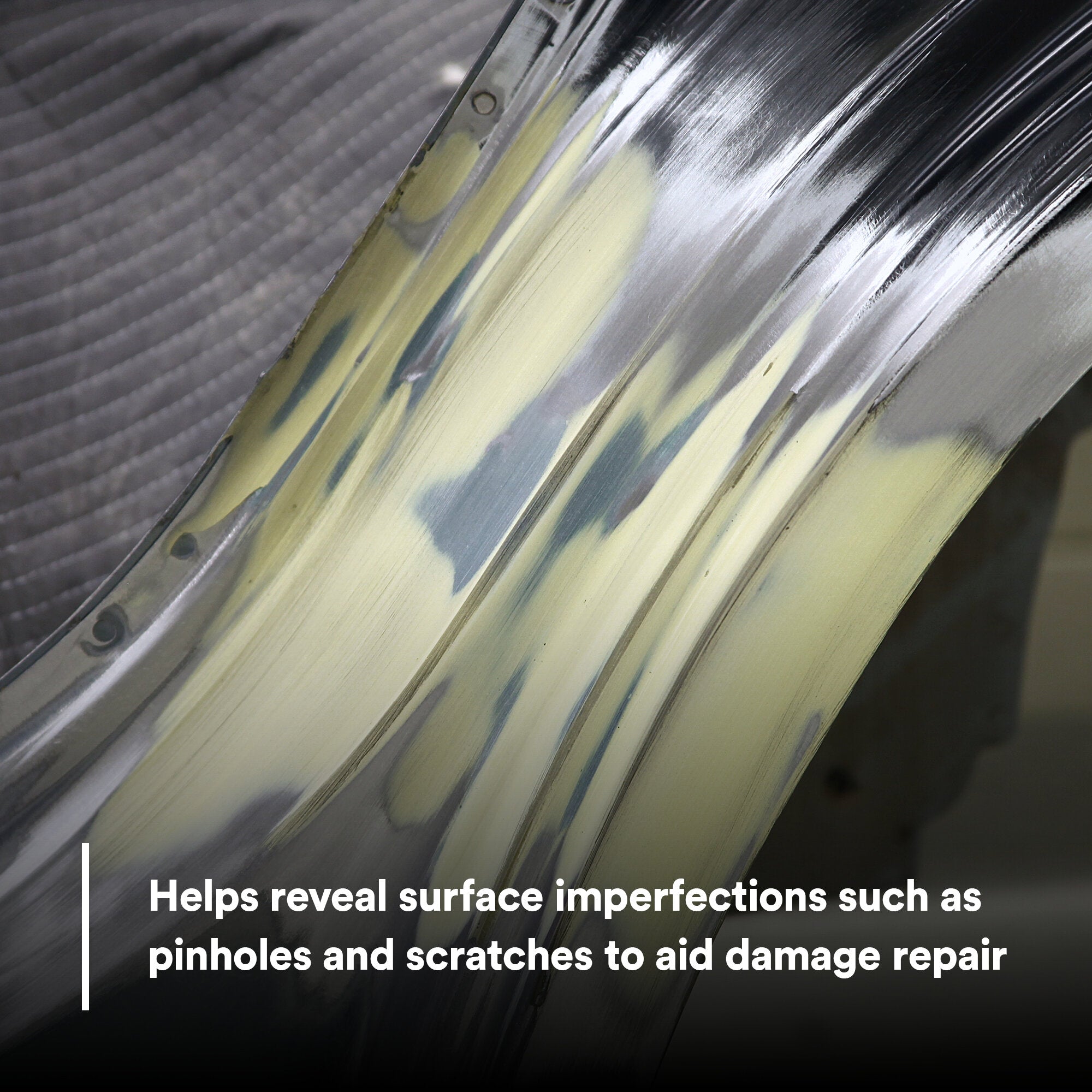 Using this product prior to priming and sanding will save you rework later when surface imperfections would otherwise appear. You get superior visualization so you can correct problems early before they become bigger problems later. Once blemishes become evident after priming or painting, you have a choice to compromise the quality of the job or do costly rework. 3M™ Dry Guide Coat saves you from that tough decision.