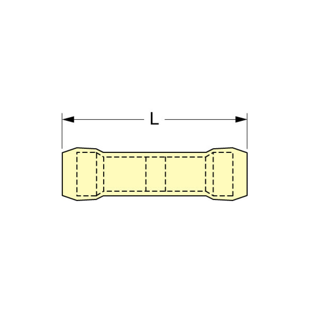 This terminal has a wire range of 16-14 AWG and case quantities of 500 per case.This butt connector uses chamfered barrel ends to provide fast easy wire insertion from both ends and a built in wire stop for correct positioning. It must be crimped at ends.