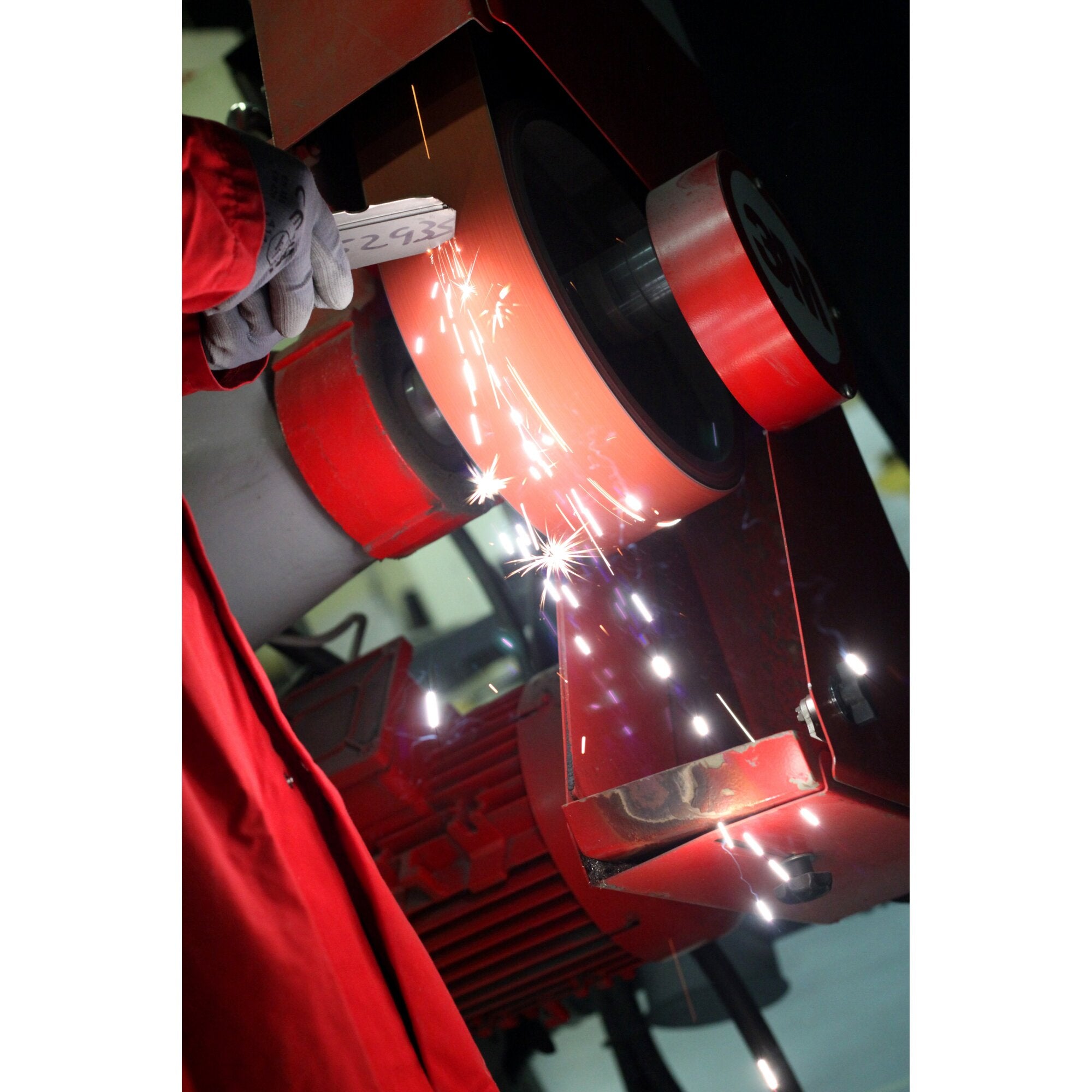 The exceptionally fast cut and long life of ceramic grain make this belt ideal for industrial environments. It is also heat resistant, produces a uniform finish over the life of the product, and helps eliminate burning during end-grain sanding applications. The YF-weight cloth backing on the 3M™ Cubitron™ II Cloth Belt 984F provides durability, and the mineral is resin bonded to the backing for reliable performance – even under high heat and pressure.