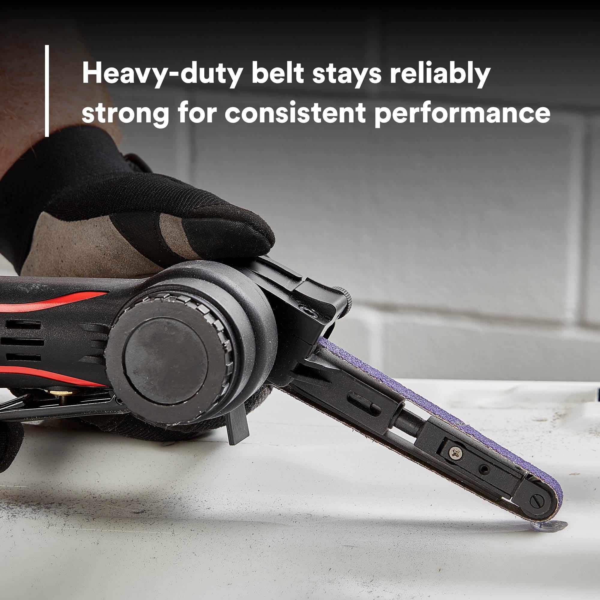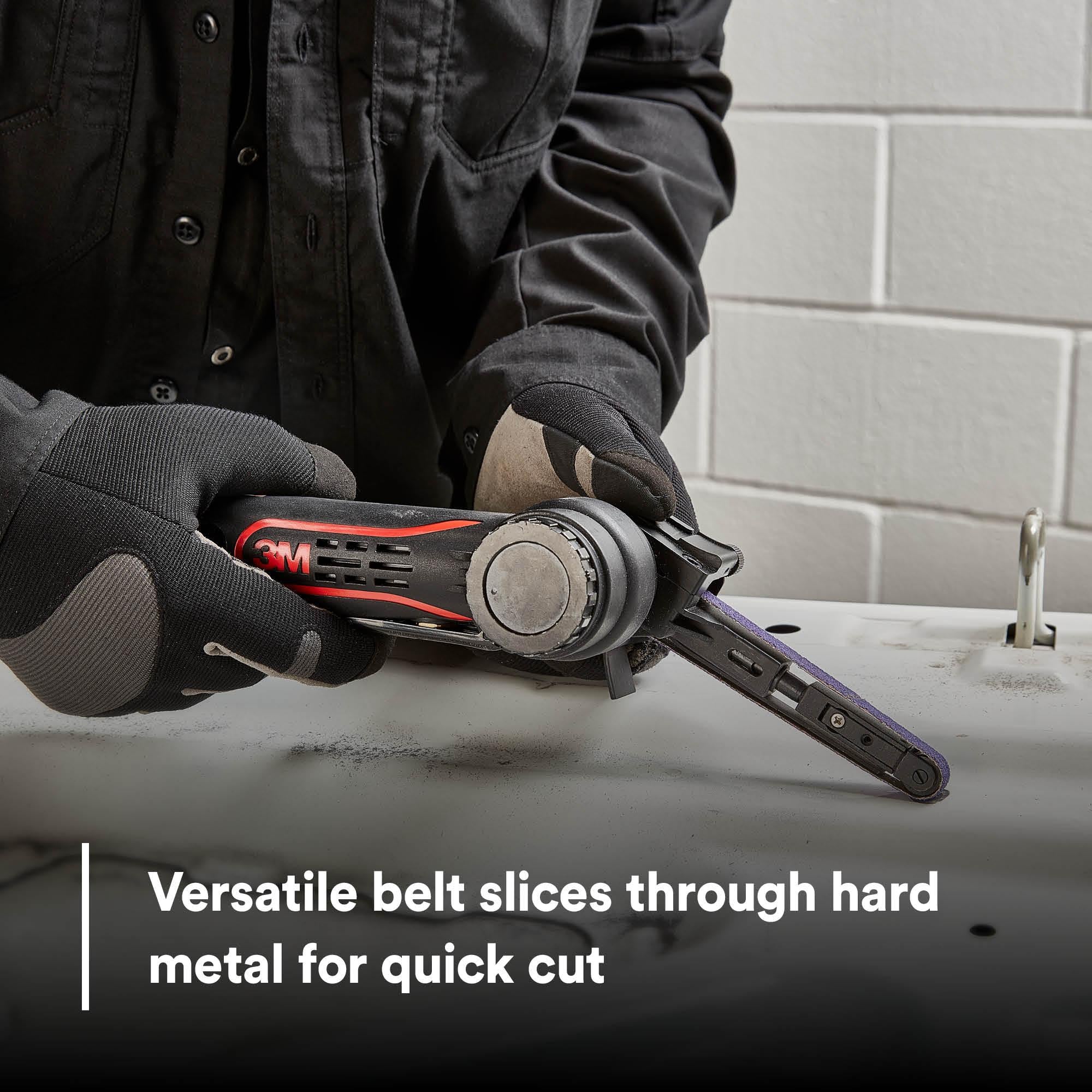 The exceptionally fast cut and long life of 3M™ ceramic abrasive grain enable this slim belt to accomplish a remarkable degree of work.  Its fast cutting action helps eliminate burning or other forms of thermal damage, as well.