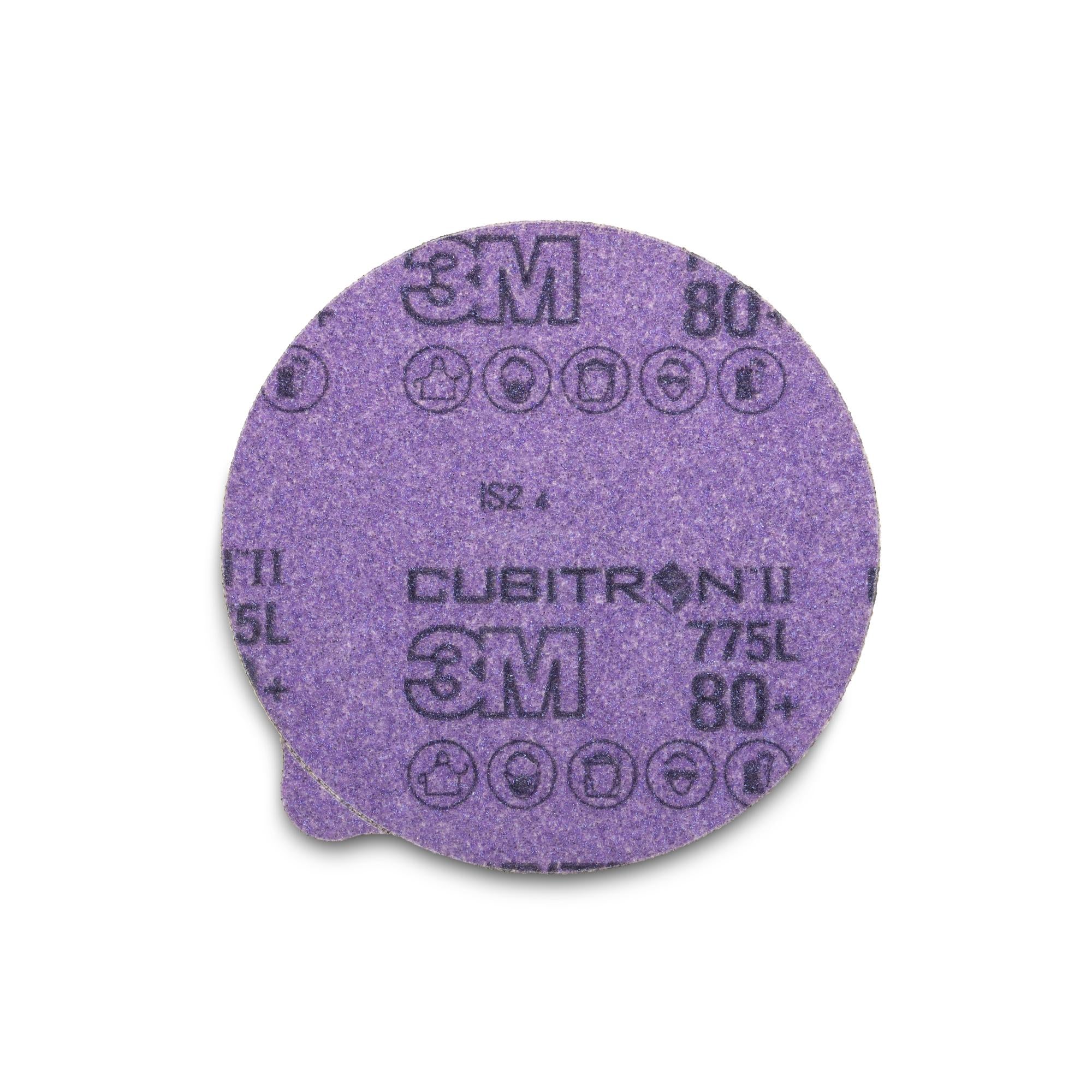 3M Cubitron II Stikit Film Disc 775L, 80+, 5 in x NH, Linered w/Tab, Die 500X