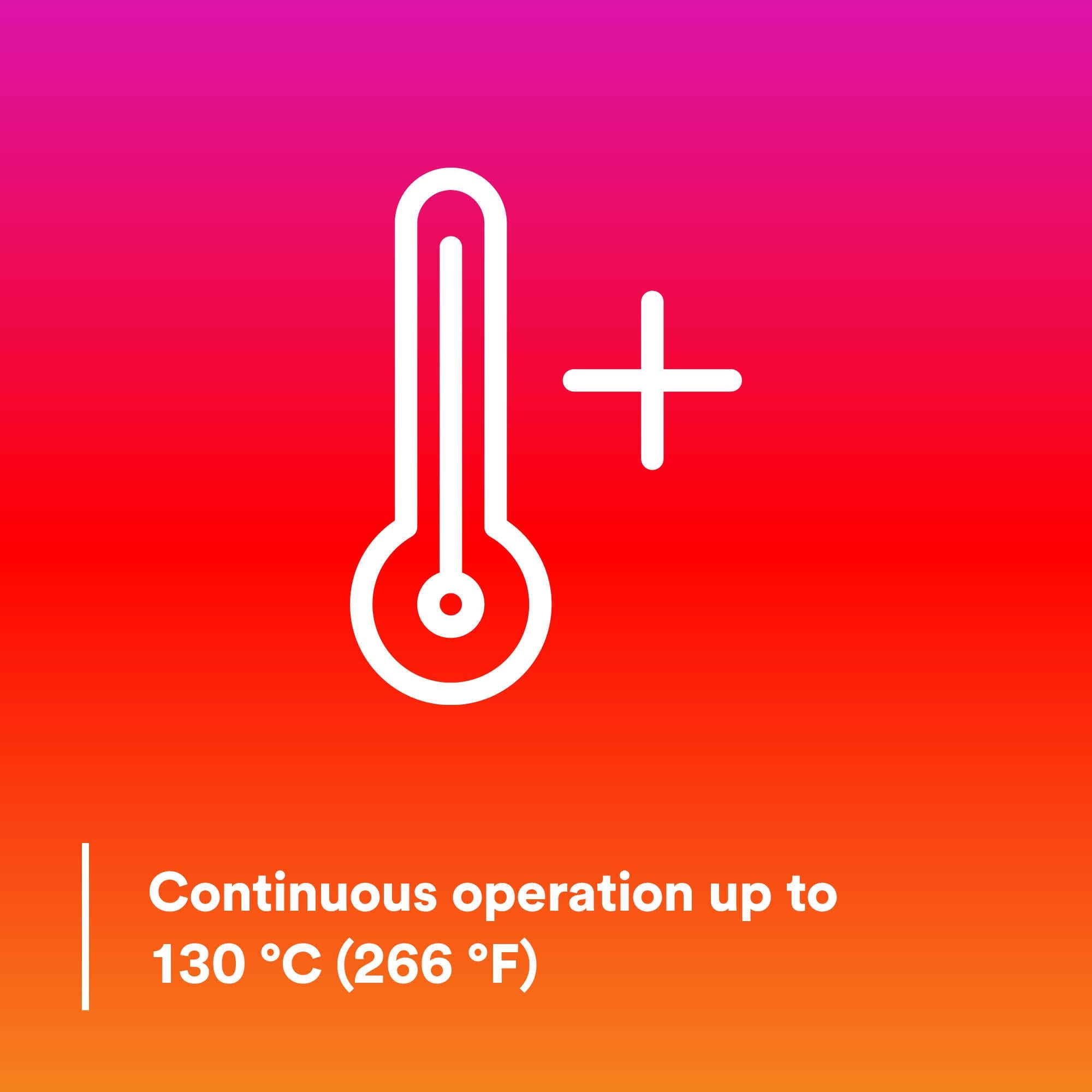 - Withstands a temperature range of 32 to 266 °F (0 to 130 °C)