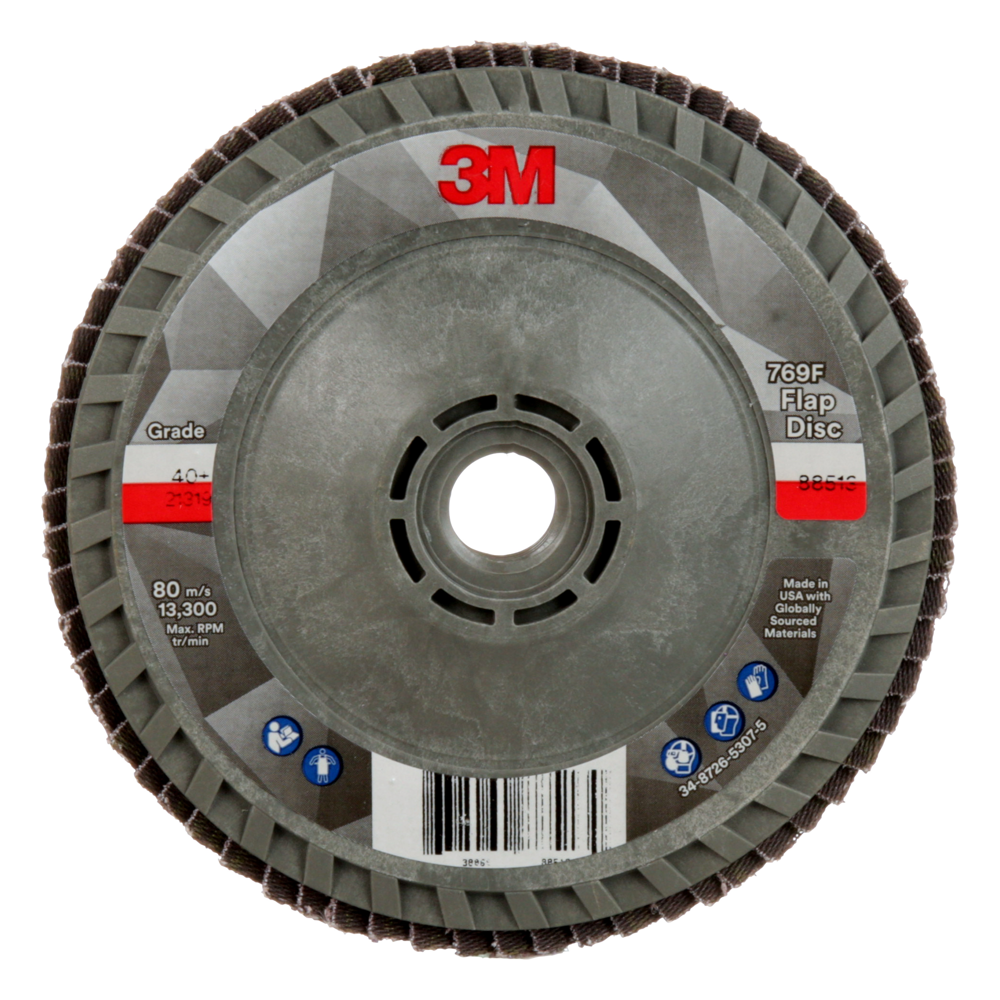3M Flap Disc 769F, 40+, T29 Quick Change, 4-1/2 in x 5/8 in-11