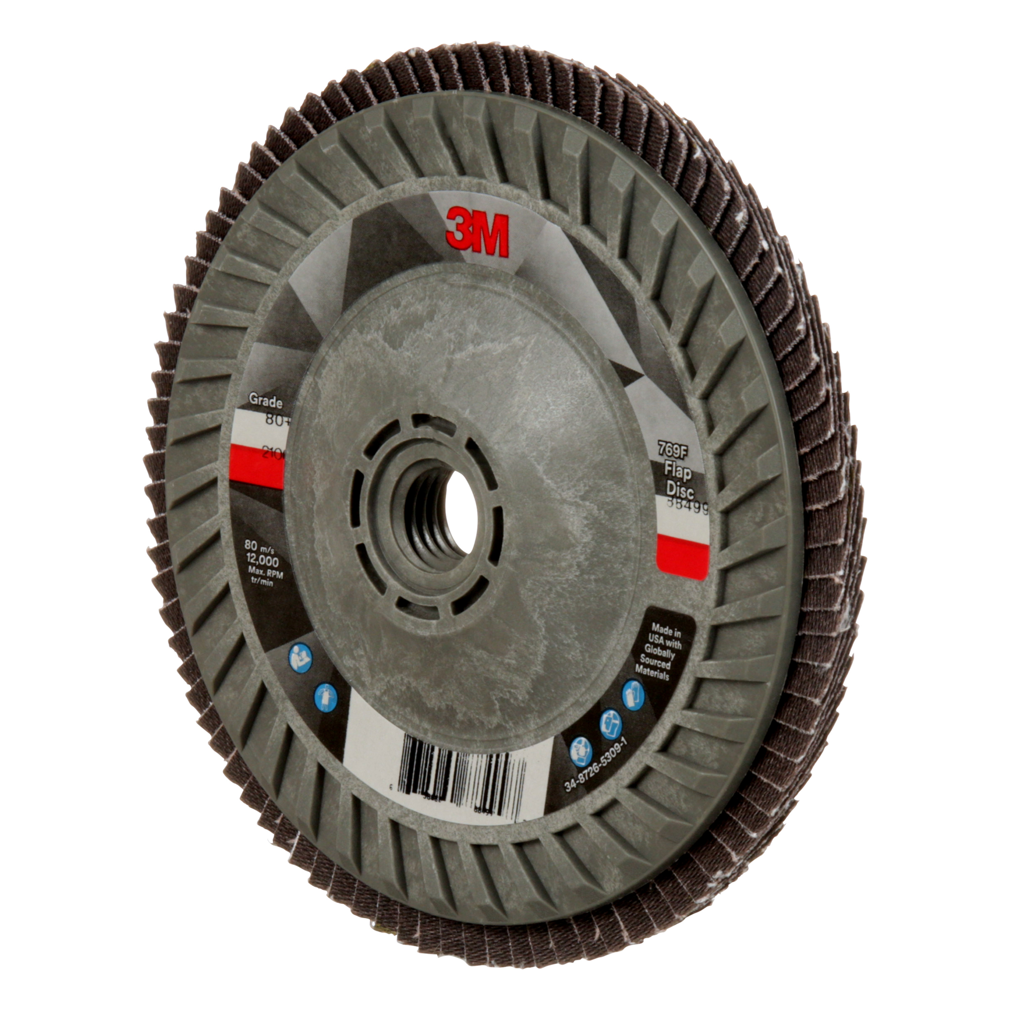 3M Flap Disc 769F, 80+, T29 Quick Change, 5 in x 5/8 in-11