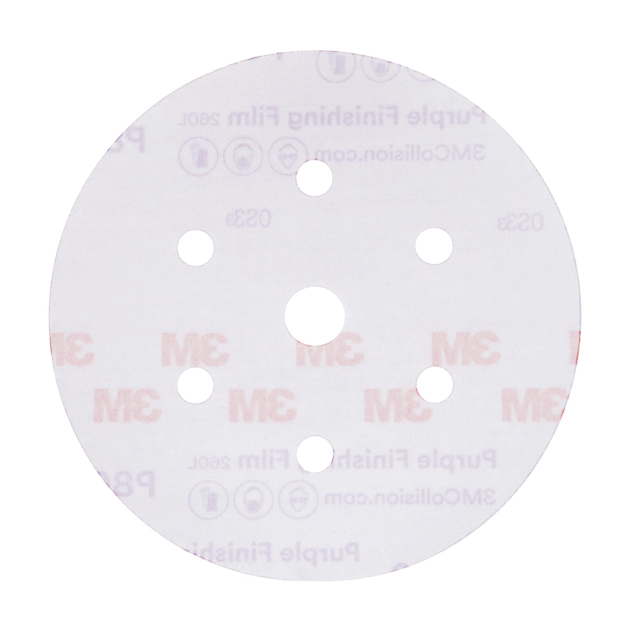 3M Hookit Purple Finishing Film Abrasive Disc 260L, 30770, 6 in, Dust Free, P800