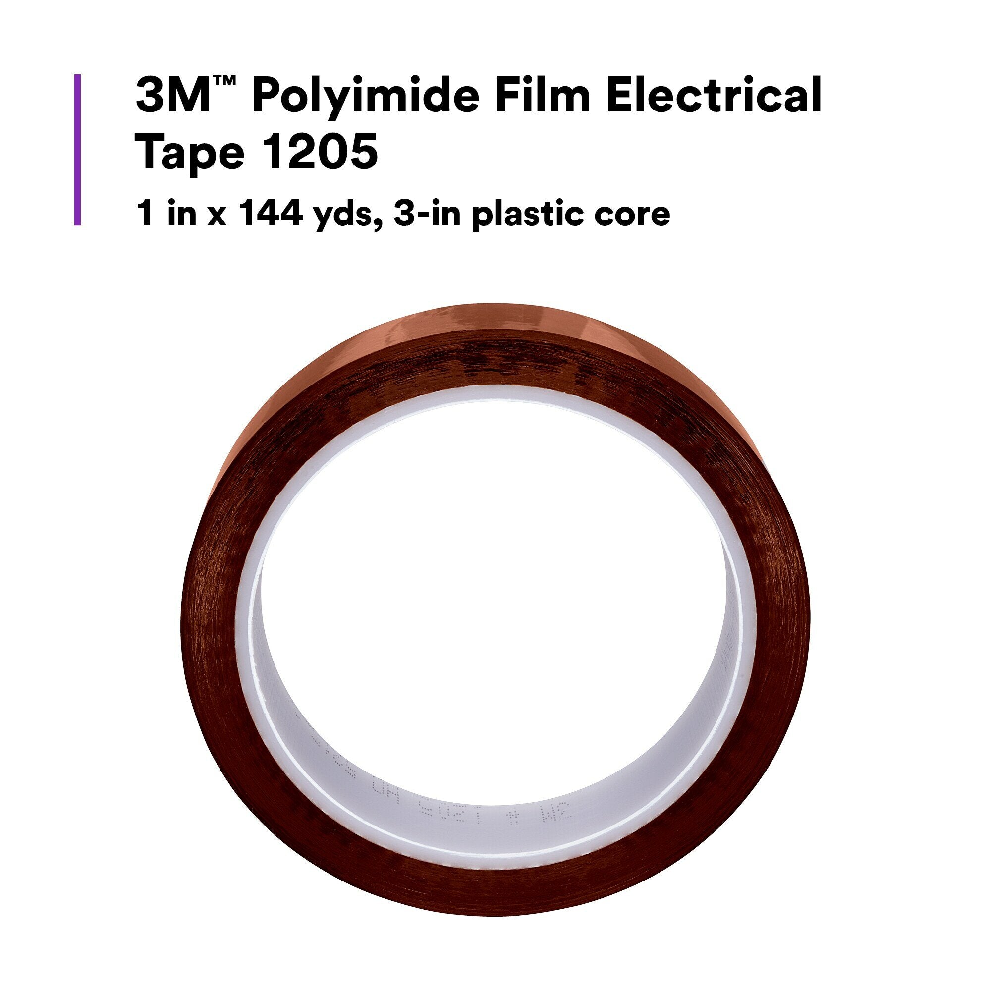 3M Polyimide Film Electrical Tape 1205, 1 in x 144 yds, 3-in plasticcore