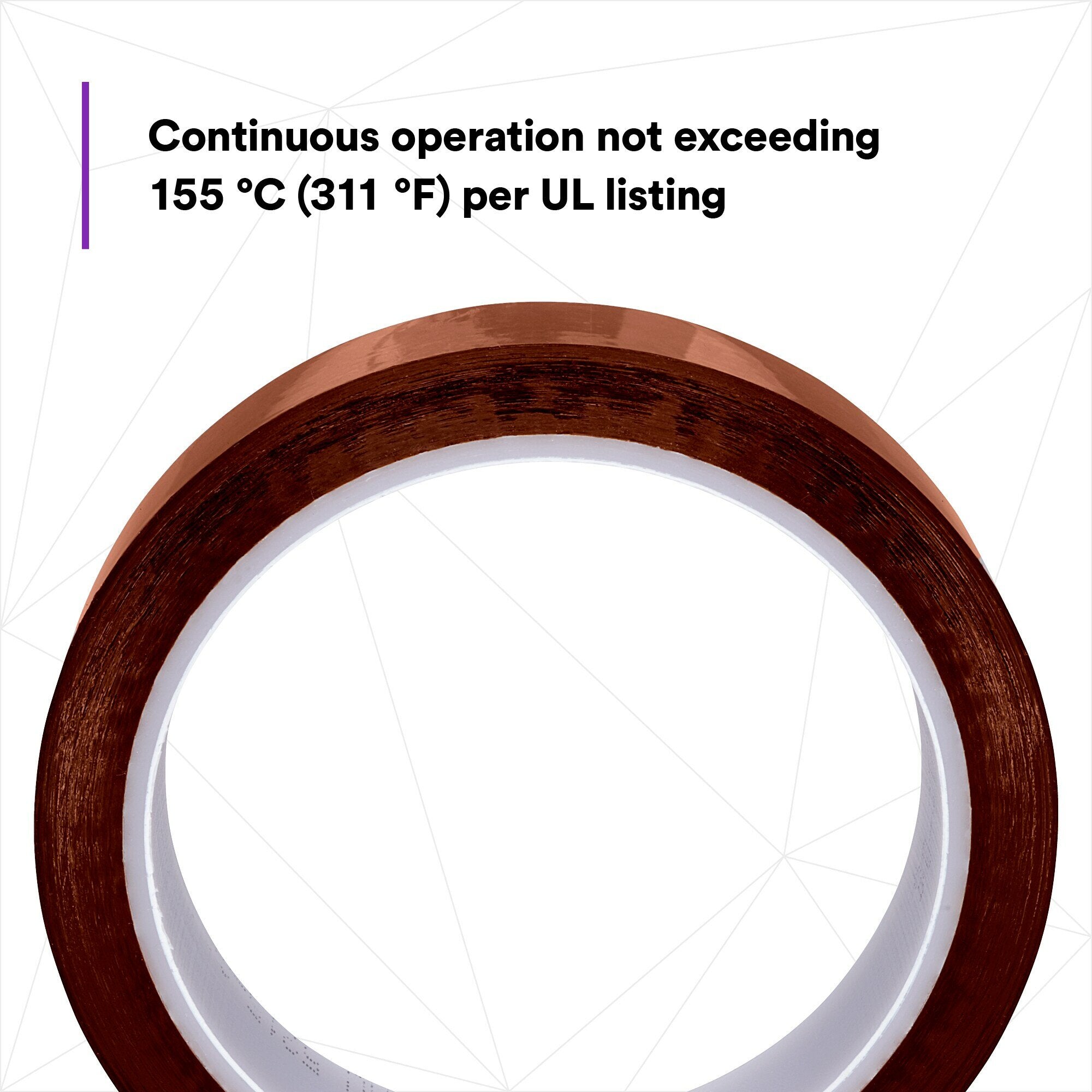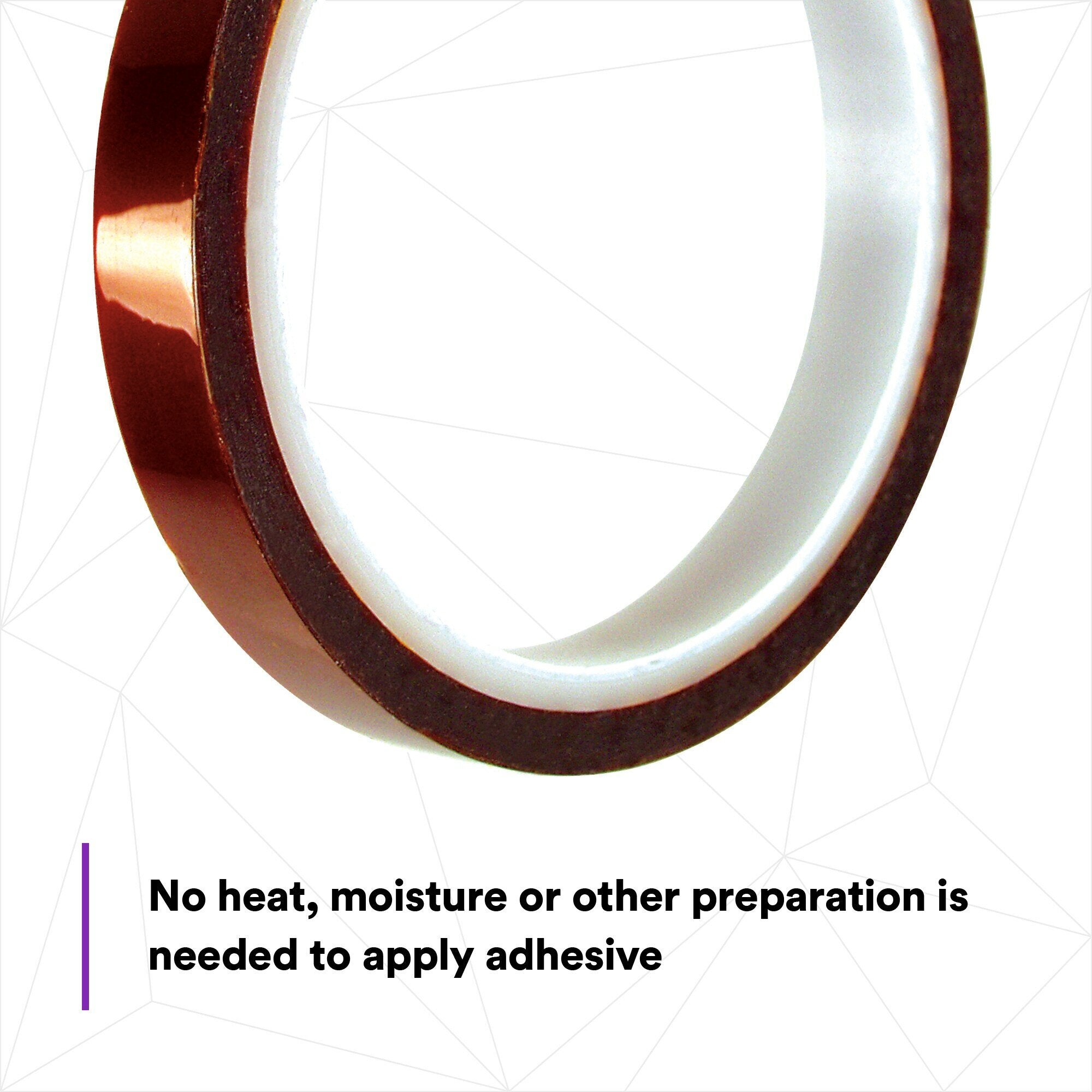 3M Polyimide Film Electrical Tape 1205 is a polyimide film backed electrical tape. This flame retardant tape is suitable for use in applications that require thin insulating material for wrapping transformers, capacitors and wire harnesses. This tape withstands a temperature range of 40 to 311 F ( 40 to 155 C) without the loss of electrical properties and tensile strength.3M™ Electrical Tape 1205 has a pressure sensitive, acrylic adhesive that offers optimized adherence. This tape is designed for anchoring leads/terminal boards. It is ideal for use as wave solder masking tape in a printed circuit board assembly. This flame retardant tape is highly resistant to heat and solvents. UL Listed and RoHS 2011/65/EU Compliant.