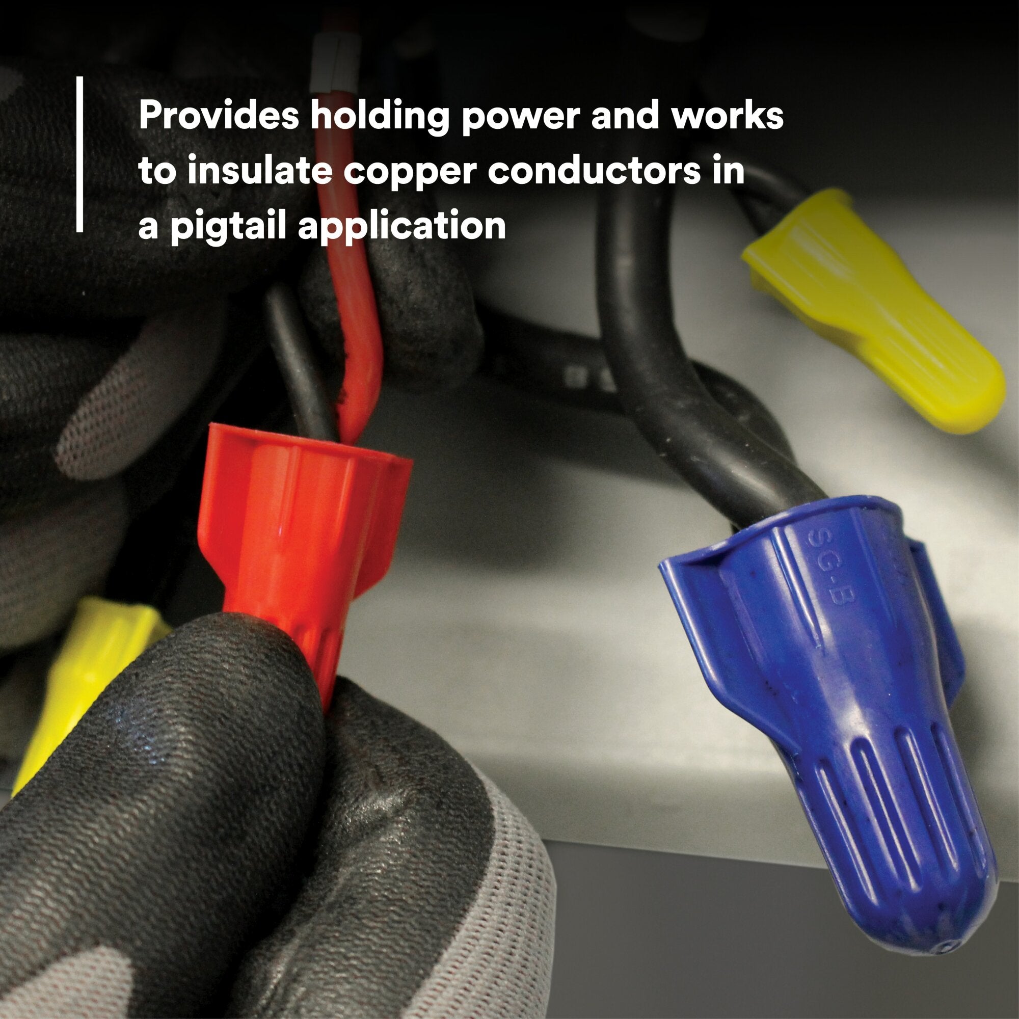 3M Secure Grip Wire Connectors are designed to give you dependable performance for a wide range of residential and commercial wiring jobs. An internal, insulated spring delivers a powerful grip for secure, solid connections that are made to last. The slip resistant ridges and straight wing design make installation fast, simple and easy on fingers.3M™ Secure Grip Wire Connectors are available in a variety of colors/wire ranges: SG Y (yellow) 2 #18 3 #12; SG T (tan) 3 #18 3 #10; SG G (green grounding) 3 #14 3 #10 (solid only); SG R (red) 3 #14 2 #8; SG B (blue) 6 #14 2 #6. UL Listed.