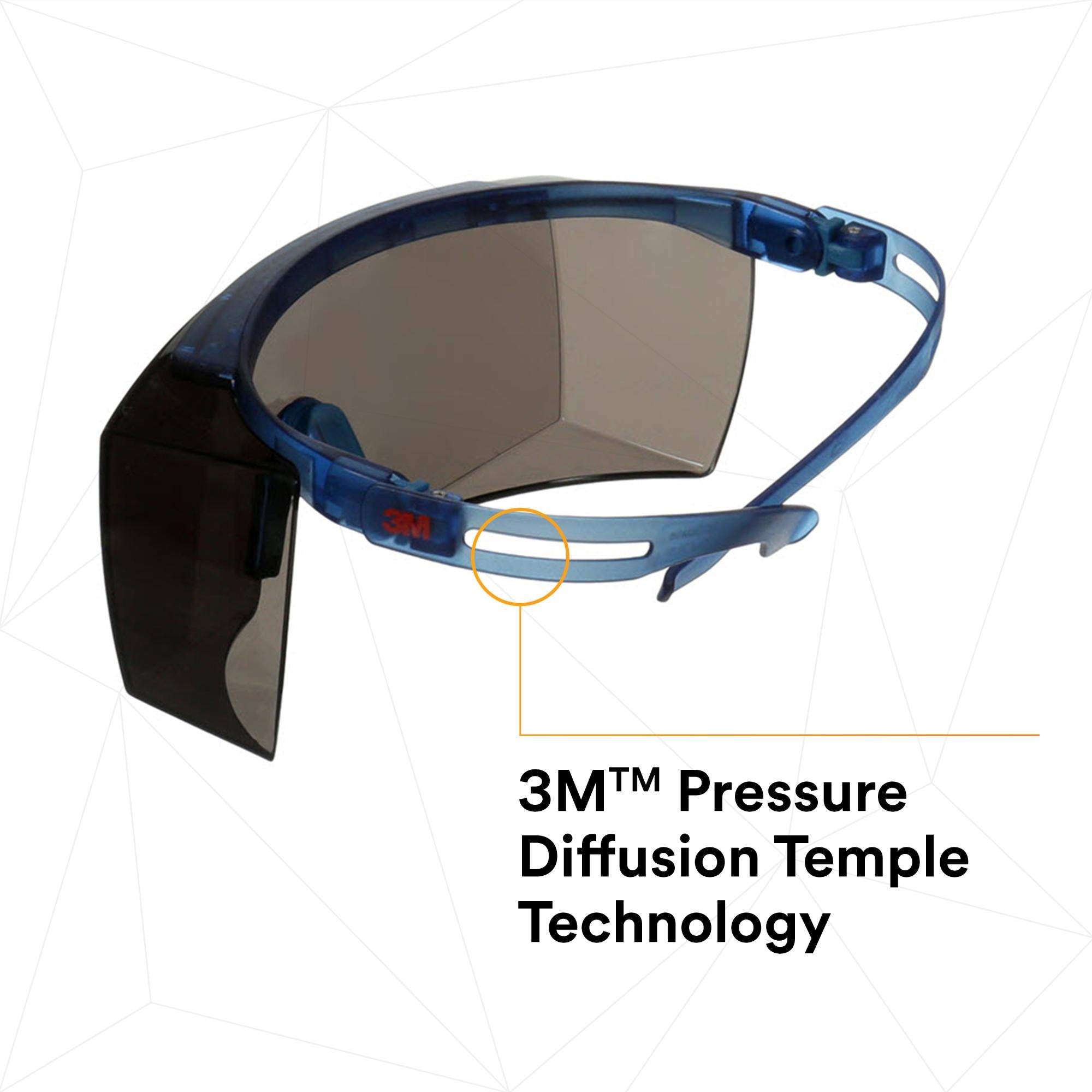 • 3M's innovative temple design features slotted ribs that provide comfortable pressure equalization, allowing the temples to flex and self-adjust to the size of the wearer's head.