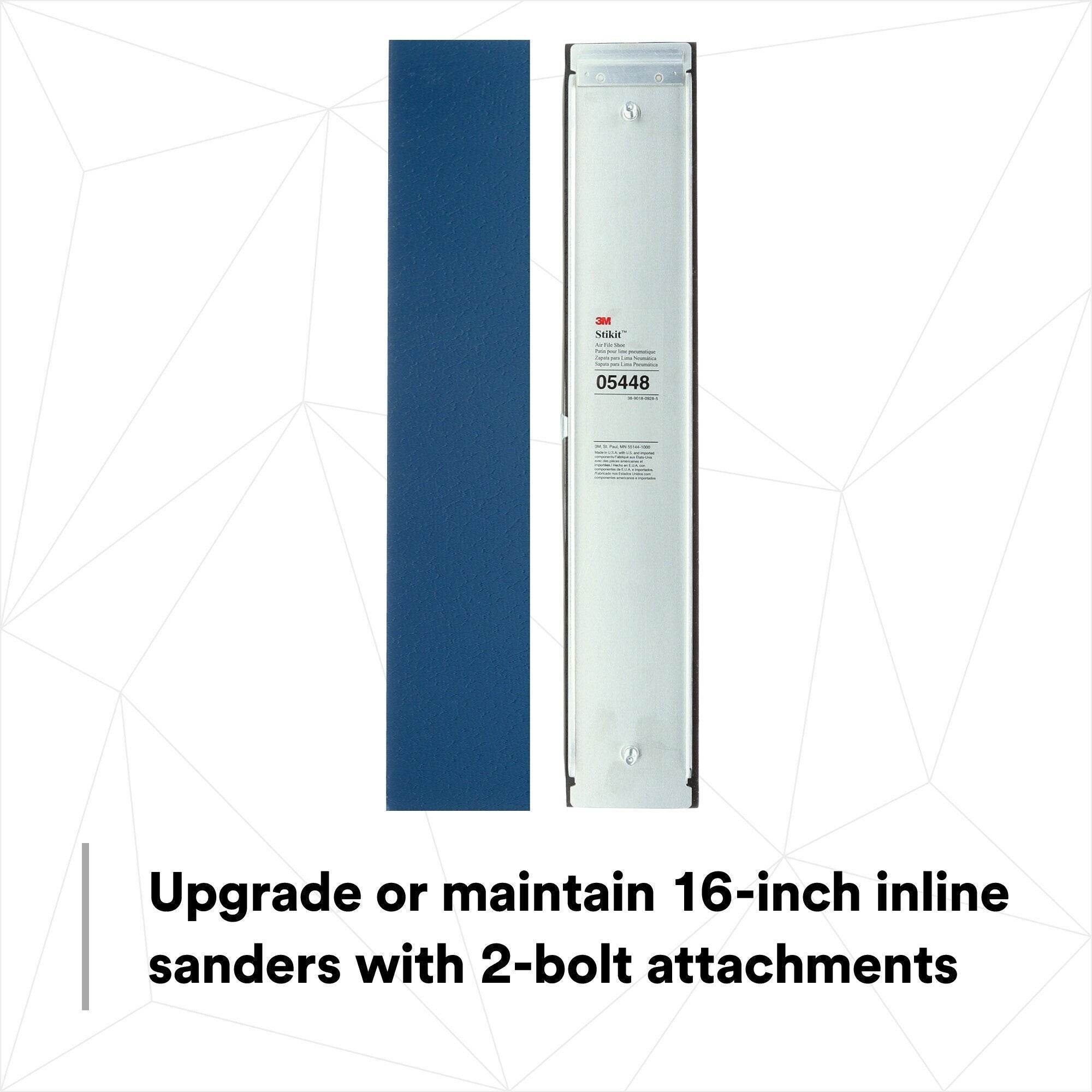 This accessory is made to work with our 3M™ Stikit™ system, which offers convenient abrasive sheet changes between grades or applications. Stikit™ abrasives come ready to use with a pressure sensitive adhesive coating on the backside so that attaching them to the air file shoe is as simple as pressing on a sticker, yet they remove cleanly without leaving any sticky residue behind.