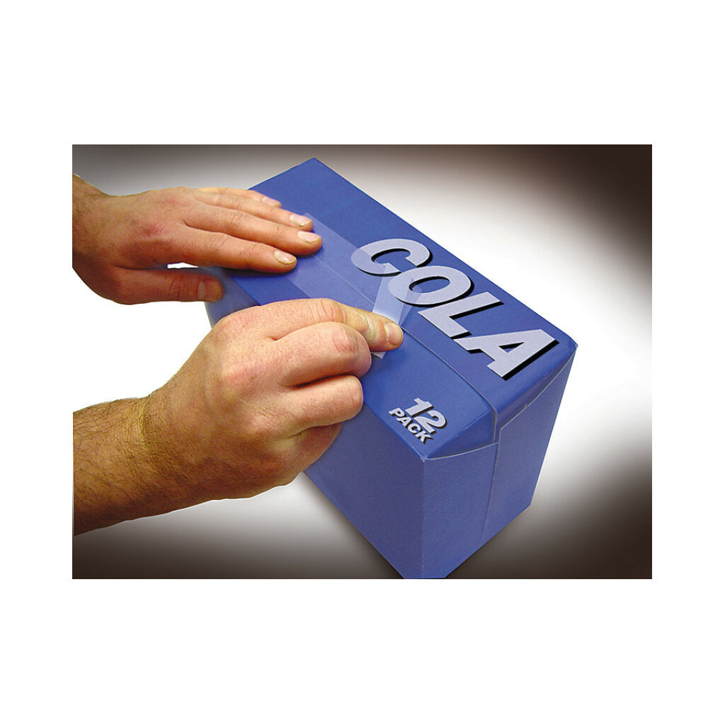 • Transparent, polypropylene backing with strong synthetic rubber adhesive sticks to bags, boxes, plastic film, metals and glass
