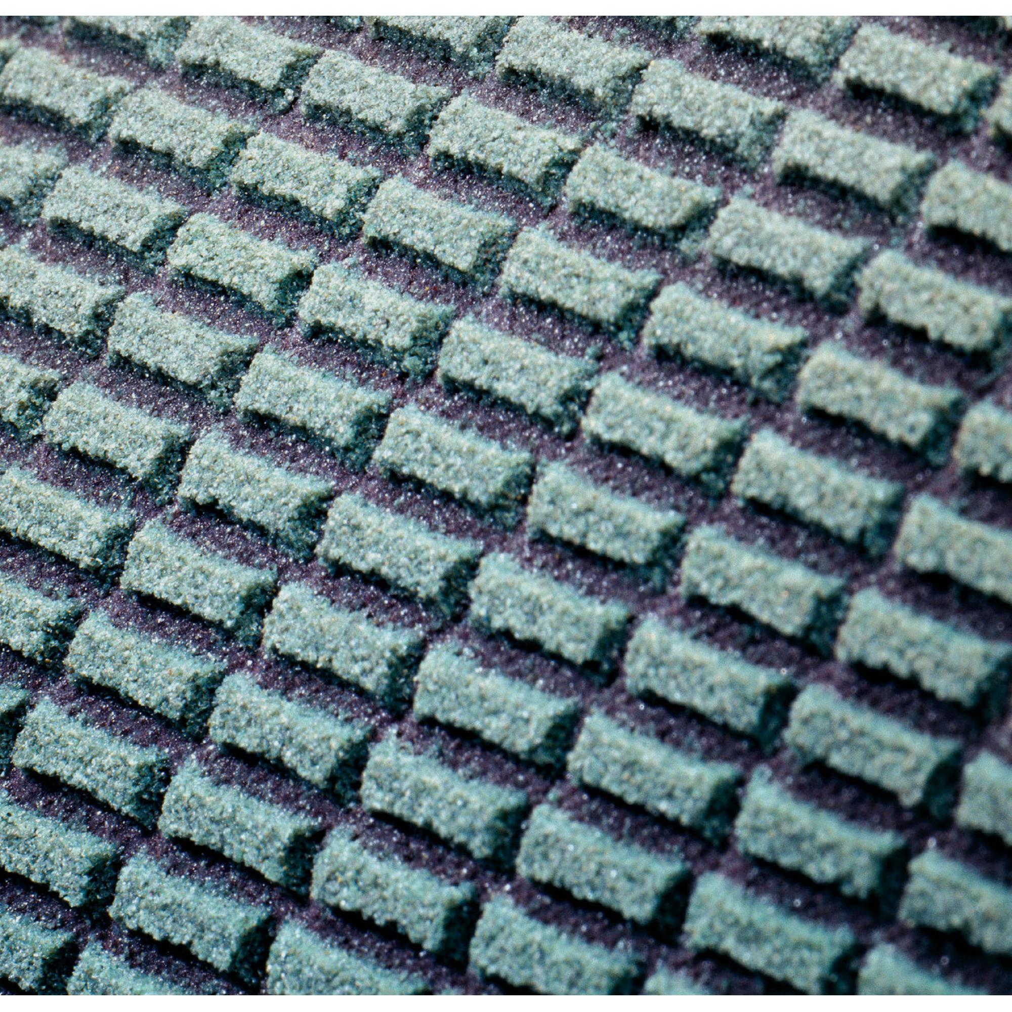 - Macroreplicated abrasive "bricks" contain multiple layers of abrasive mineral, "channels" keep remove swarf and keep work surfaces cleaner