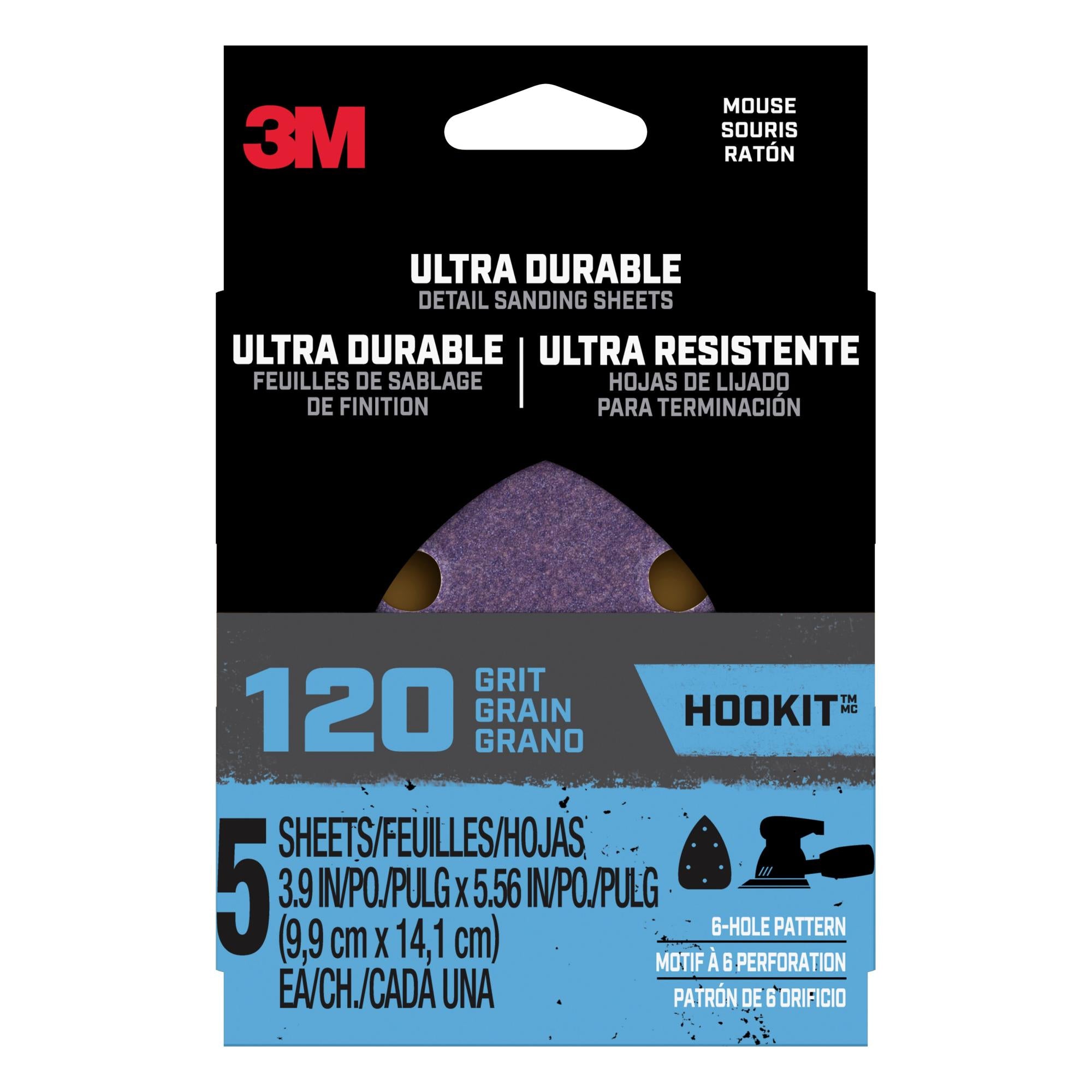 3M Ultra Durable Detail Sanding Sheets, 120 grit, Mouse5pk120, 5/pk