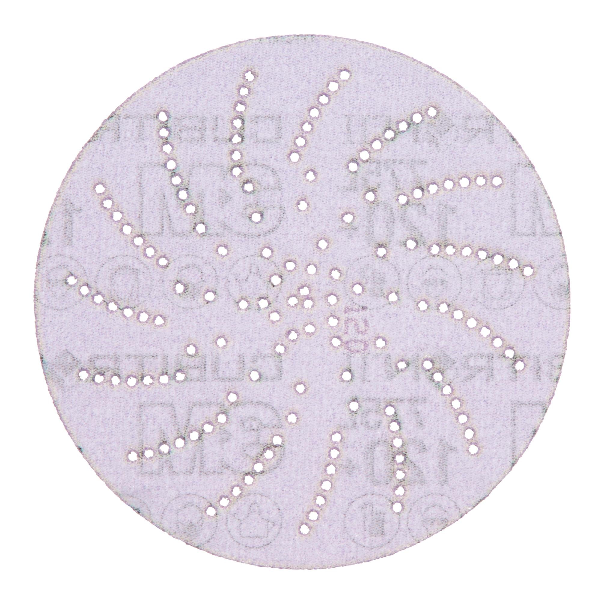 3M Xtract Cubitron II Disc 775L features a 3M proprietary multi-hole pattern for improved dust extraction in finishing applications. Part of the 3M Xtract Series, designed for optimal dust removal. An innovative multi-hole pattern extracts dust better than 5- or 6-hole products increasing cut and dramatically increasing disc life. The design does not need to align with the disc pad holes, making switching the discs fast, easy and convenient. Featuring ceramic 3M Precision-Shaped Grain, a revolutionary advancement in abrasive technology. The triangular shaped ceramic mineral is designed to slice through the substrate, rather than gouging or plowing like conventional abrasives, resulting in a disc that cuts up to 2x as fast as conventional abrasives. The film backing delivers outstanding tear resistance, flexibility and a consistent, uniform finish on a variety of substrates.These discs are ideal for a broad range of applications focused primarily on stock removal, and are effective on a wide variety of substrates, including metals, composites, gelcoat, and whitewood. The film backing offers greater tear resistance than paper discs, for additional durability and edge retention. For best results, pair with 3M Xtract™ Random Orbital Sanders.