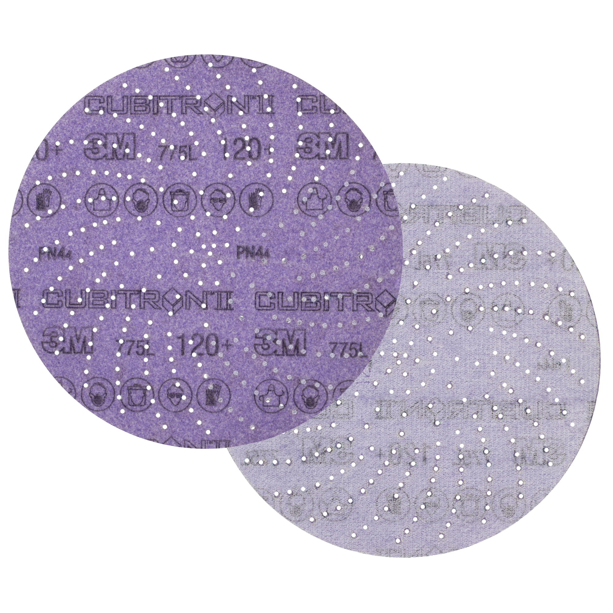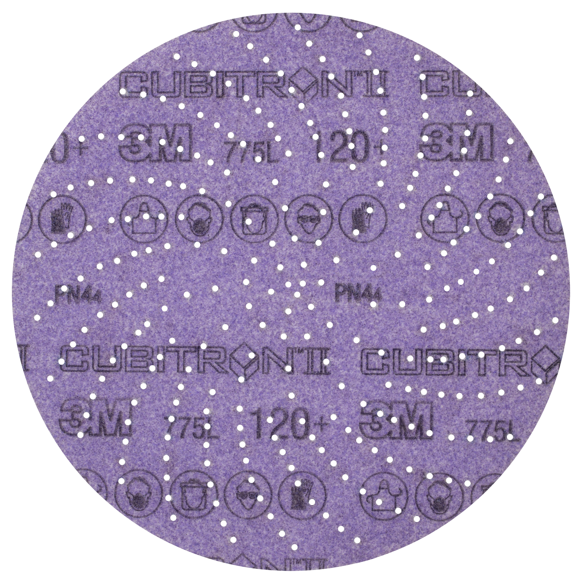 3M Xtract Cubitron II Disc 775L features a 3M proprietary multi-hole pattern for improved dust extraction in finishing applications. Part of the 3M Xtract Series, designed for optimal dust removal. An innovative multi-hole pattern extracts dust better than 5- or 6-hole products increasing cut and dramatically increasing disc life. The design does not need to align with the disc pad holes, making switching the discs fast, easy and convenient. Featuring ceramic 3M Precision-Shaped Grain, a revolutionary advancement in abrasive technology. The triangular shaped ceramic mineral is designed to slice through the substrate, rather than gouging or plowing like conventional abrasives, resulting in a disc that cuts up to 2x as fast as conventional abrasives. The film backing delivers outstanding tear resistance, flexibility and a consistent, uniform finish on a variety of substrates.These discs are ideal for a broad range of applications focused primarily on stock removal, and are effective on a wide variety of substrates, including metals, composites, gelcoat, and whitewood. The film backing offers greater tear resistance than paper discs, for additional durability and edge retention. For best results, pair with 3M Xtract™ Random Orbital Sanders.