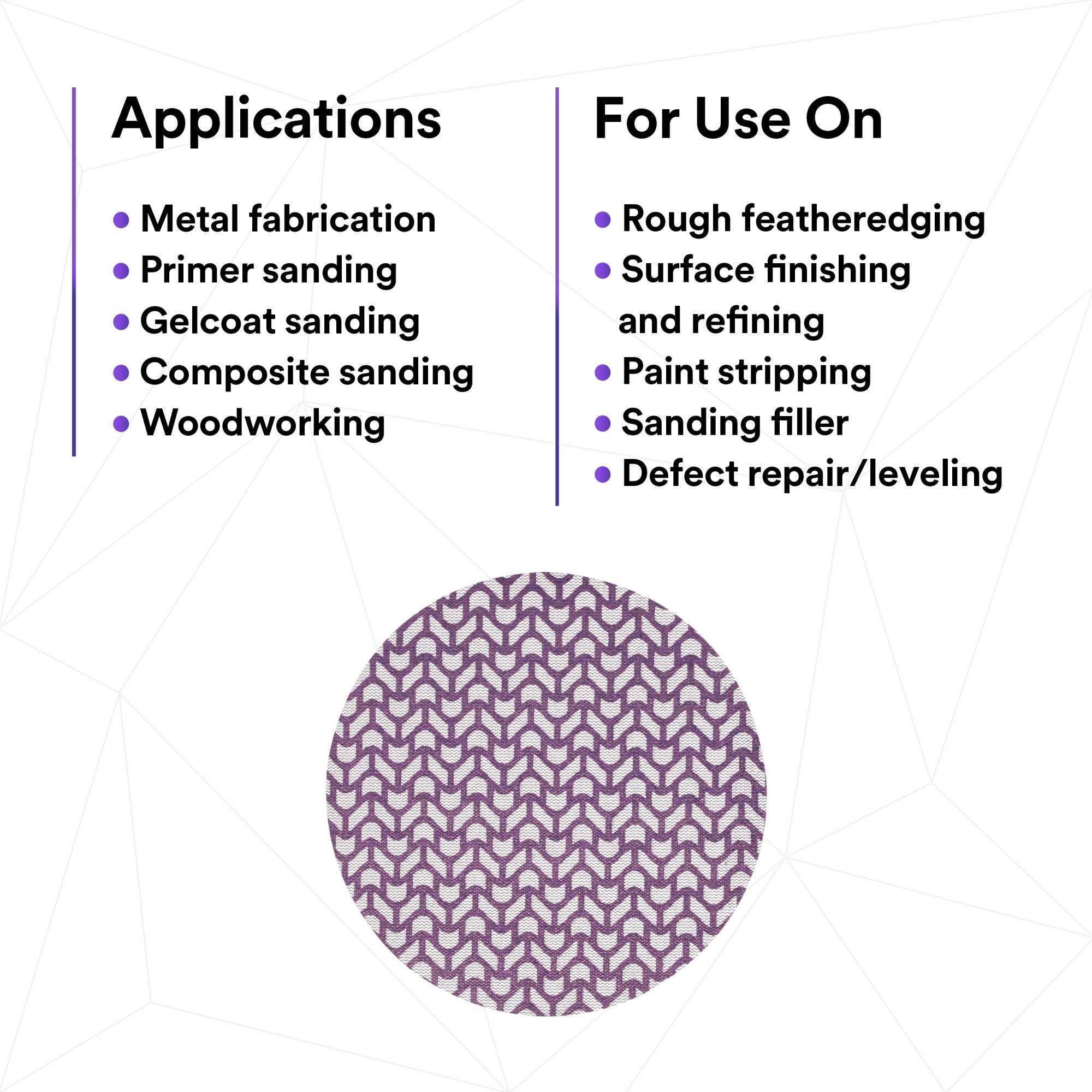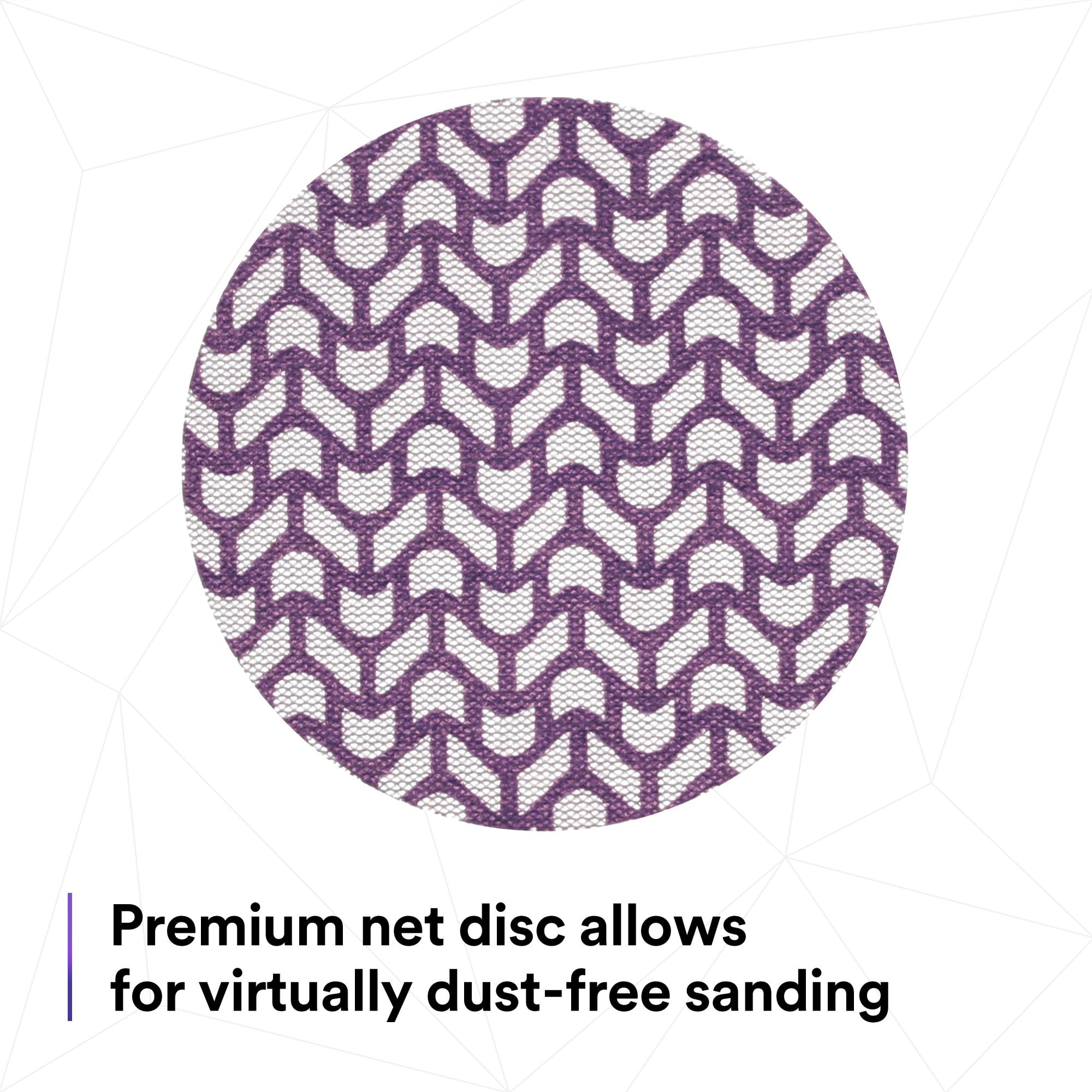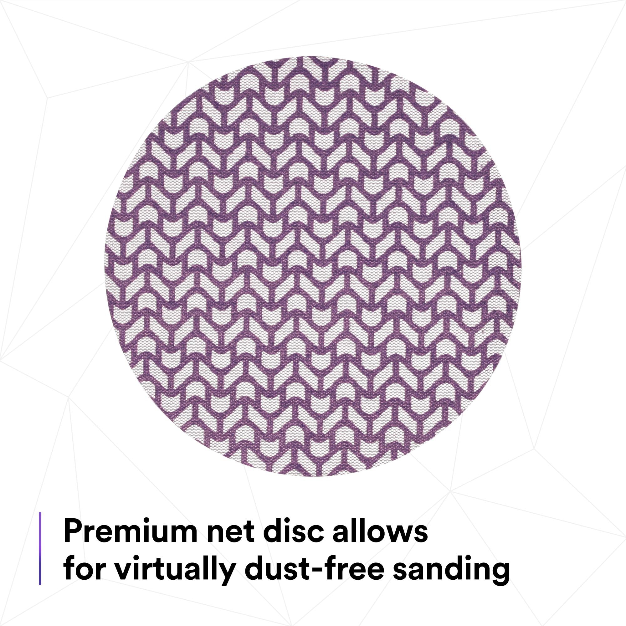 Dust extraction meets industry-leading cut-rate in 3M Xtract™ Cubitron™ II Net Disc 710W. This premium sanding disc features a unique abrasive pattern on a net backing that allows for virtually dust-free sanding, with legendary 3M Precision-Shaped Grain technology. You’ll finish more parts per disc with less dust in the environment, boosting productivity without sacrificing dust extraction.Sanding, reimagined.