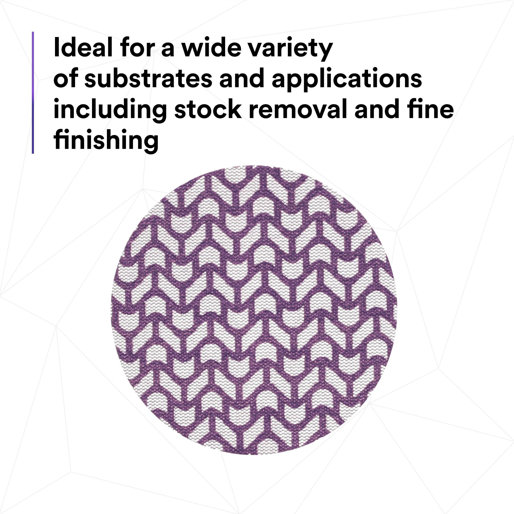 3M has eliminated the tradeoff between dust extraction and disc performance. By combining legendary 3M Precision-Shaped Grain technology with a net backing, 3M Xtract™ Cubitron™ II Net Disc 710W achieves an industry-leading cut-rate while allowing for virtually dust-free sanding. Ceramic 3M Precision-Shaped Grain continually fractures into sharp cutting edges, delivering twice the abrasive life and cut-rate of leading competitor net discs.