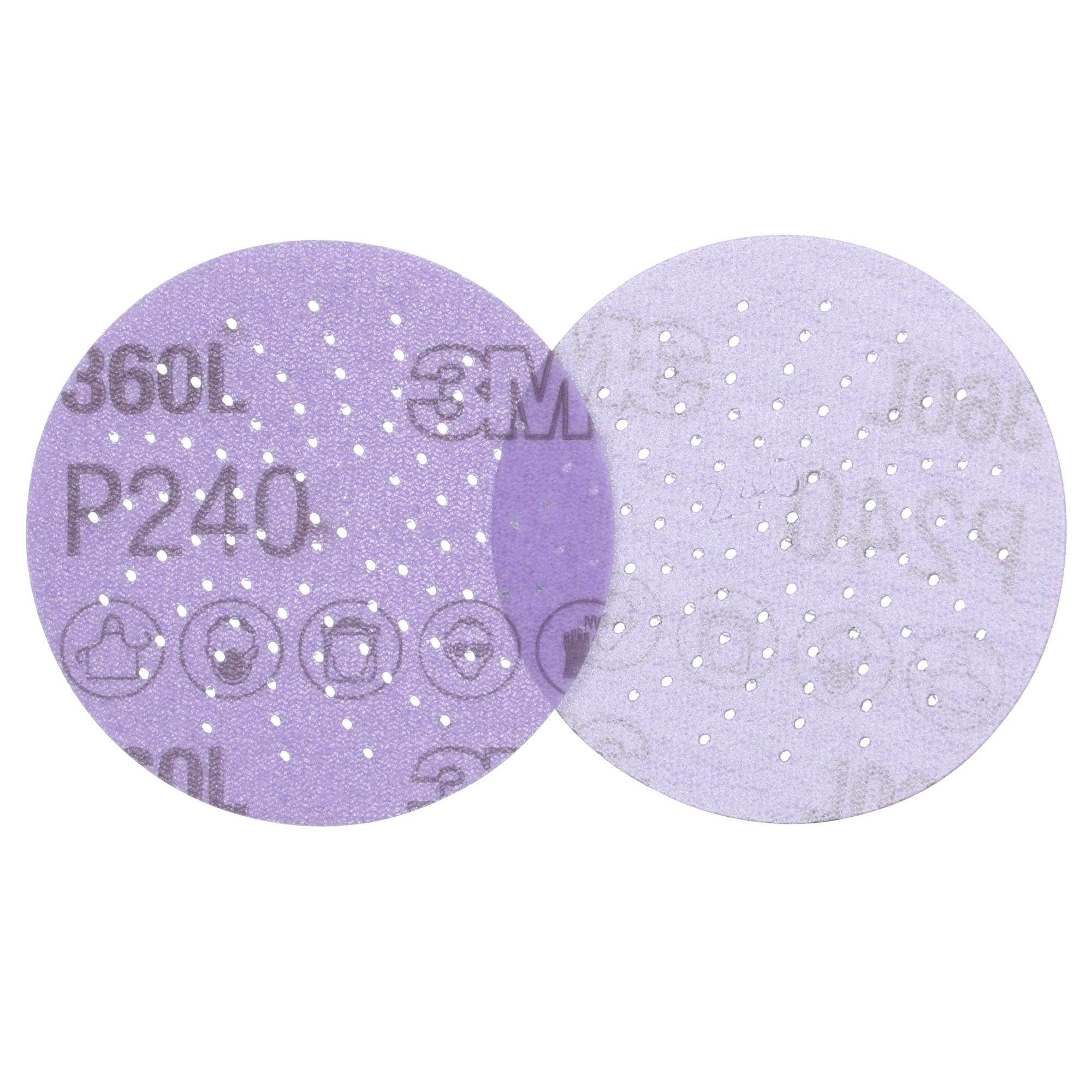 3M Xtract Film Disc 360L offers the latest innovation in dust evacuation. Multi-hole patterns evacuate dust better than 5- or 6-hole productssignificantly increasing cut-rate and disc life. The new design does not need to align with the disc pad holes, making switching the discs fast, easy, and convenient.Open-Coat Construction Minimizes LoadingSandpaper discs cut better and last longer when dust isn't loading the cutting surface of the abrasives. Reducing dust is easier than ever with 3M Xtract™ sanding discs. An open coat means the abrasive grains have space between them so that sanding debris collects in the spaces rather than loading the cutting edge of the grains. The load resistant coating allows the disc to continue cutting even when sanding softwoods, paints, and other materials that would, otherwise, clog the disc and hinder sanding ability. Meanwhile, the innovative multi-hole pattern extracts dust better than 5- or 6-hole products — increasing cut and dramatically increasing disc life.