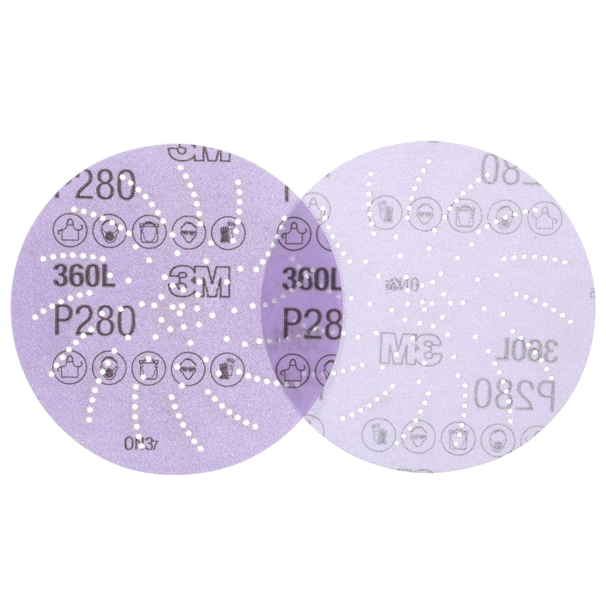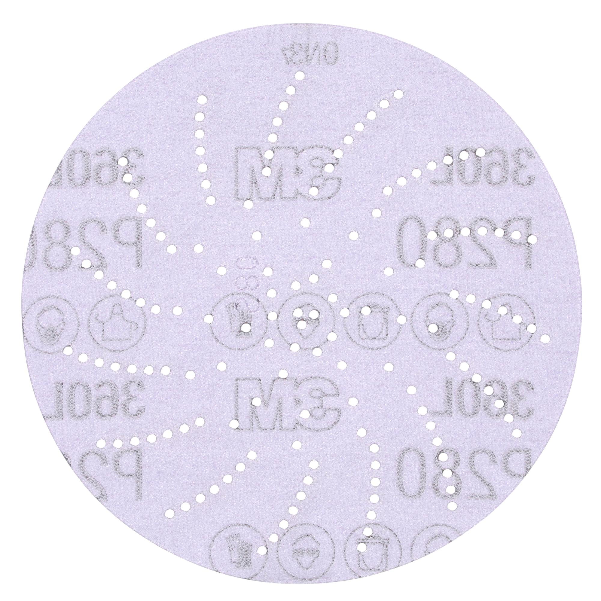 3M Xtract Film Disc 360L offers the latest innovation in dust evacuation. Multi-hole patterns evacuate dust better than 5- or 6-hole productssignificantly increasing cut-rate and disc life. The new design does not need to align with the disc pad holes, making switching the discs fast, easy, and convenient.Open-Coat Construction Minimizes LoadingSandpaper discs cut better and last longer when dust isn't loading the cutting surface of the abrasives. Reducing dust is easier than ever with 3M Xtract™ sanding discs. An open coat means the abrasive grains have space between them so that sanding debris collects in the spaces rather than loading the cutting edge of the grains. The load resistant coating allows the disc to continue cutting even when sanding softwoods, paints, and other materials that would, otherwise, clog the disc and hinder sanding ability. Meanwhile, the innovative multi-hole pattern extracts dust better than 5- or 6-hole products — increasing cut and dramatically increasing disc life.