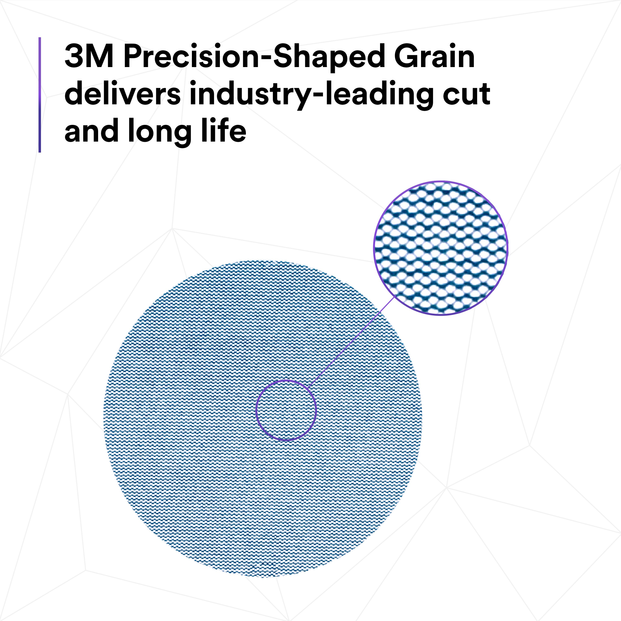 • LONG LASTING 3M PRECISION-SHAPED GRAIN: Mixed with premium aluminum oxide abrasive for a fast cut and long life. The disc cuts with less pressure required by the operator, making for more comfortable sanding