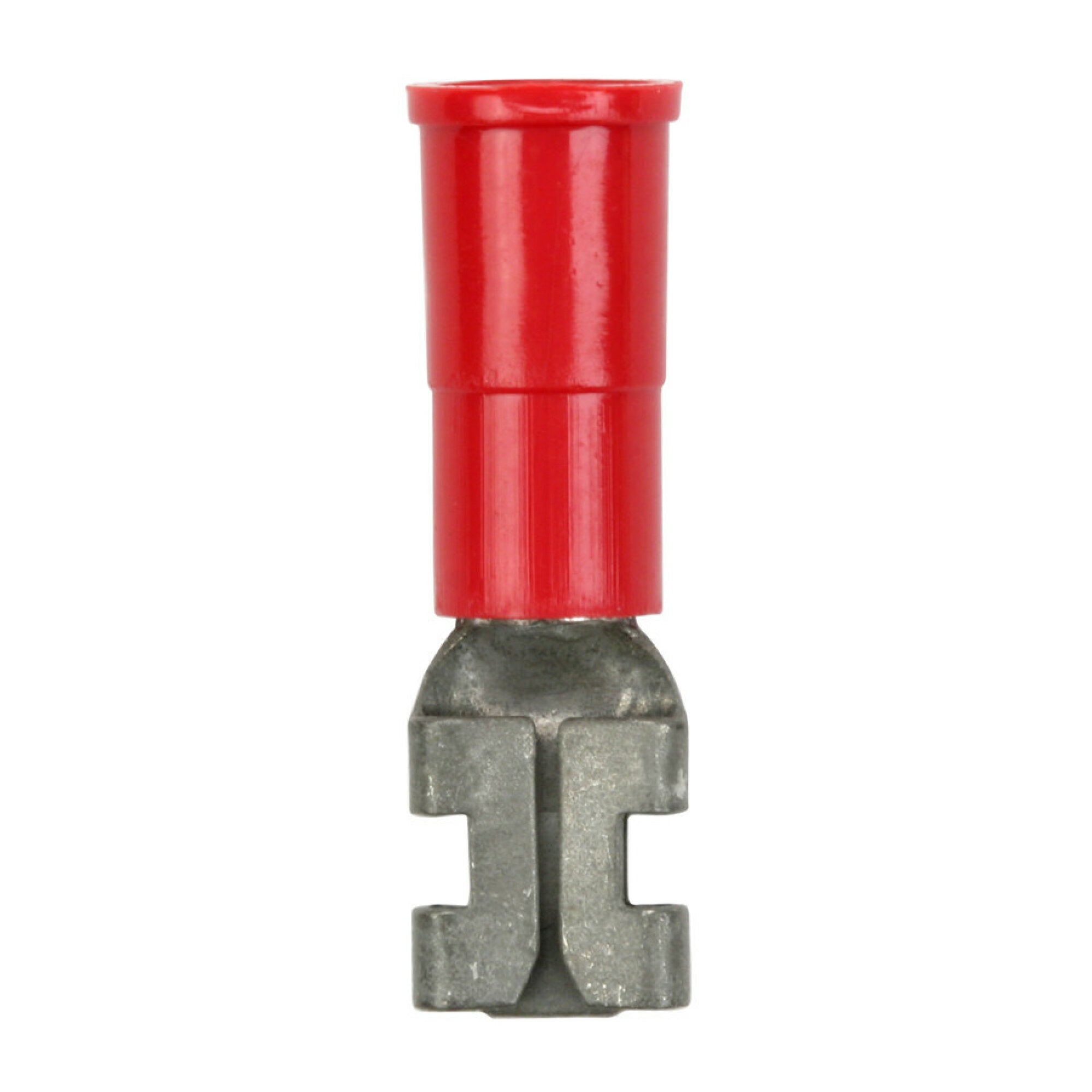 3M Standard Female Disconnect Terminals have dents and rolled edges to offer great holding force while allowing for quick and easy disconnect. The terminal has a nylon-insulated, butted-seam barrel and withstands temperatures of -40 to 221 degrees F (-40 to 105 degrees C). Its durable brass construction offers good conductivity and a tin-plated finish resists corrosion.The 3M™ Color-Coded Standard Female Disconnect Terminal attaches to the mating part with a tongue that slips over the male tab. The butted-seam barrel is covered by a funnel-designed, seamless brass sleeve to guide the wire into position. The nylon sleeve is abrasion-resistant, flared and offers a positive grip, while its stepped design ensures mistake-proof crimping. UL Listed, CSA Certified and RoHS 2011/65/EU Compliant.