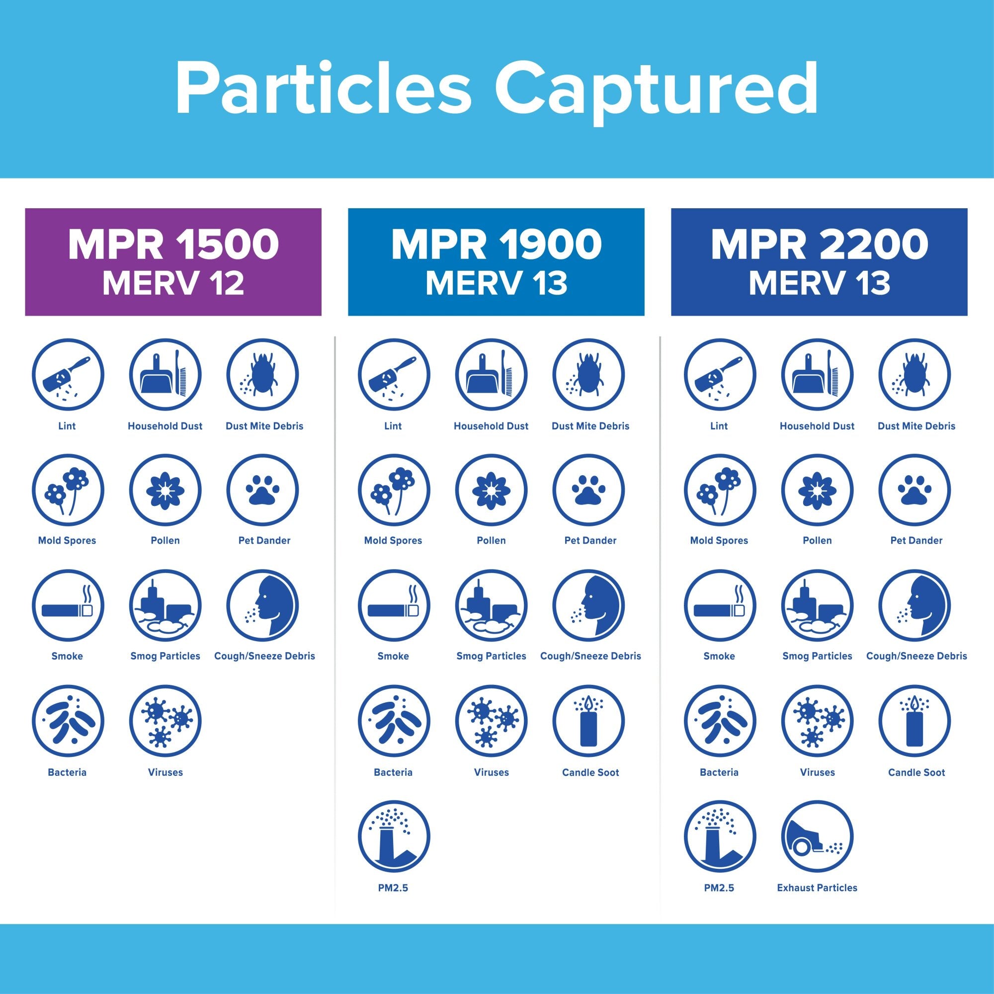 - The higher the MPR, the more microparticles--such as pollen, pet dander, smoke, bacteria and viruses--your filter will capture from the air passing through it
