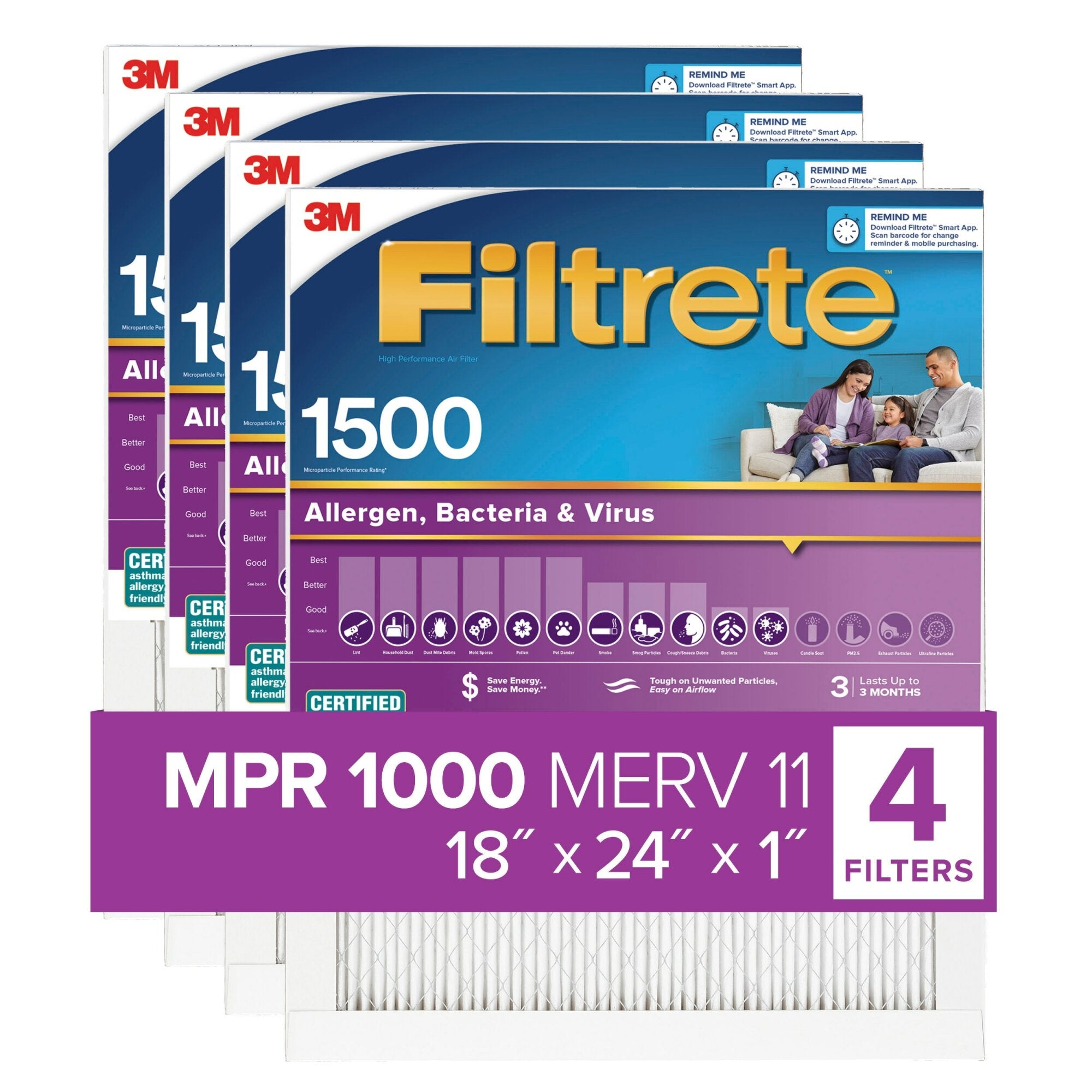 Filtrete Allergen, Bacteria & Virus Air Filter, 1500 MPR, 2021-4
