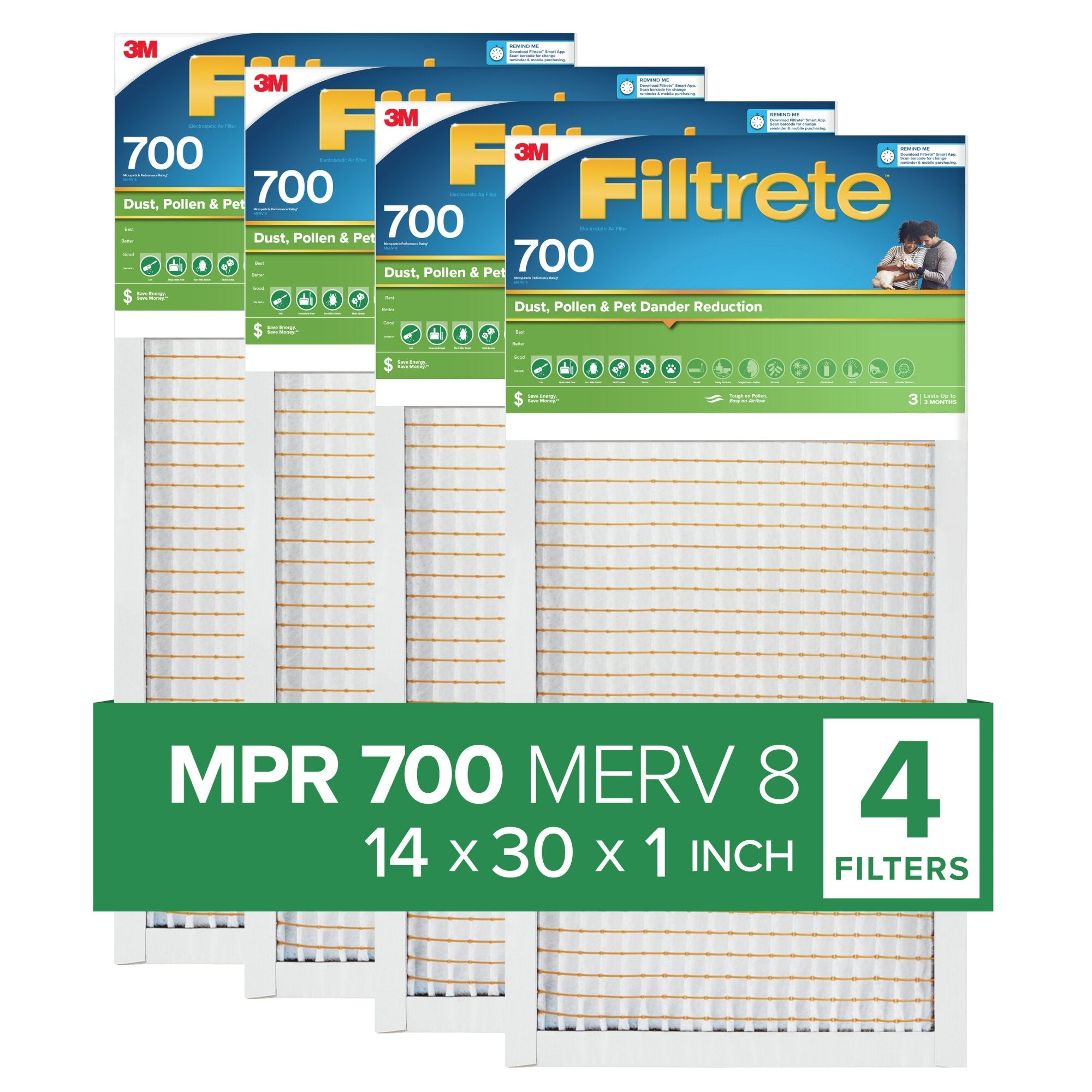 Filtrete Electrostatic Air Filter 700 MPR 724-4PK-1E, 14 in x 30 in x 1 in