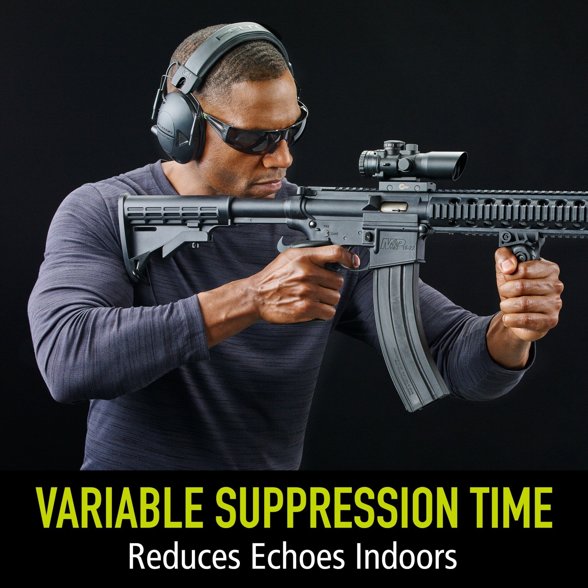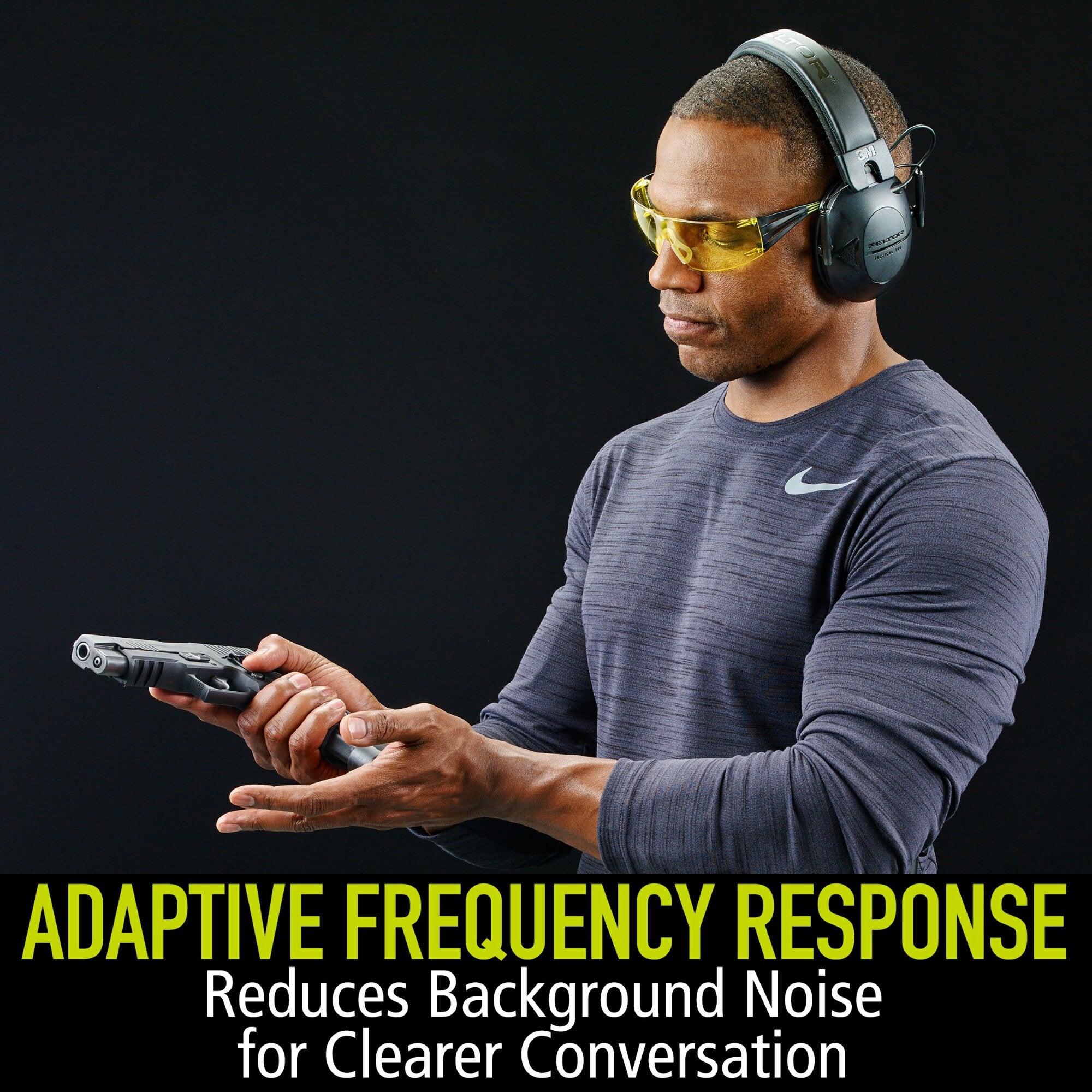 The 3M Peltor Sport Tactical 100 Electronic Hearing Protector, with improved performance, enhanced comfort features and greater functionality. Featuring proprietary 3M technology that suppresses harmful gunshot noise while amplifying low level sounds, the Peltor Sport Tactical 100 Electronic Hearing Protector is ideal for both indoor and outdoor shooters and hunters. Adaptive Frequency Response reduces background noise for clearer conversations and hearing of commands. Plus, the Variable Suppression Time feature provides optimal echo reduction in indoor shooting environments. Please note this is not a noise cancelling hearing protector.