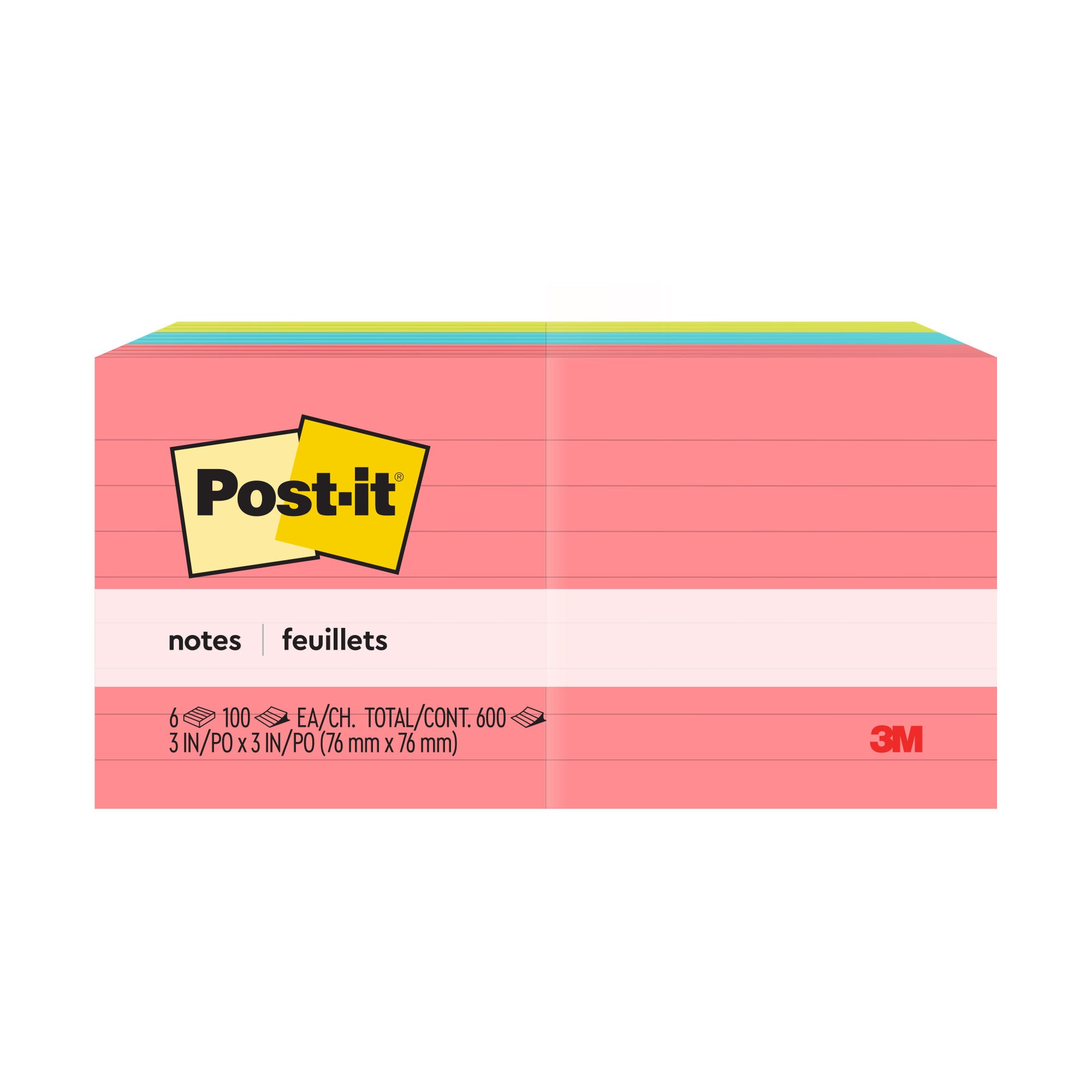 Post-it® Notes stick securely and remove cleanly, featuring a unique adhesive designed for use on paper.Post-it® Notes stick securely and remove cleanly, featuring a unique adhesive designed for use on paper. 3 in. x 3 in. size is great to call out important information or leave notes in calendars or planners. Lined notes are great for short lists. The Poptimistic collection gives your messages pop and optimism with bright colors that grab attention. America’s #1 favorite sticky note, Post-it® Notes are recyclable, and the paper in Post-it® Super Sticky Notes is sourced from certified, renewable and responsibly managed forests. 6 Pads/Pack, 100 Sheets/Pad