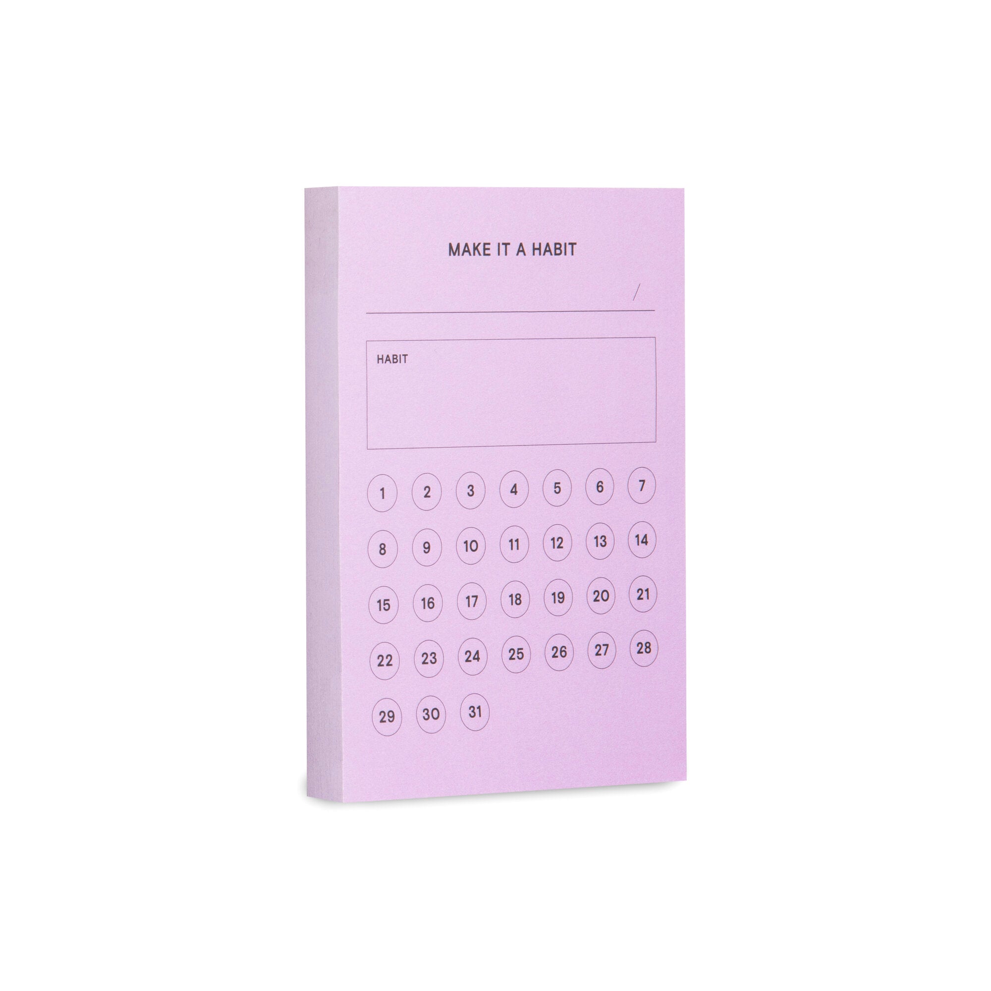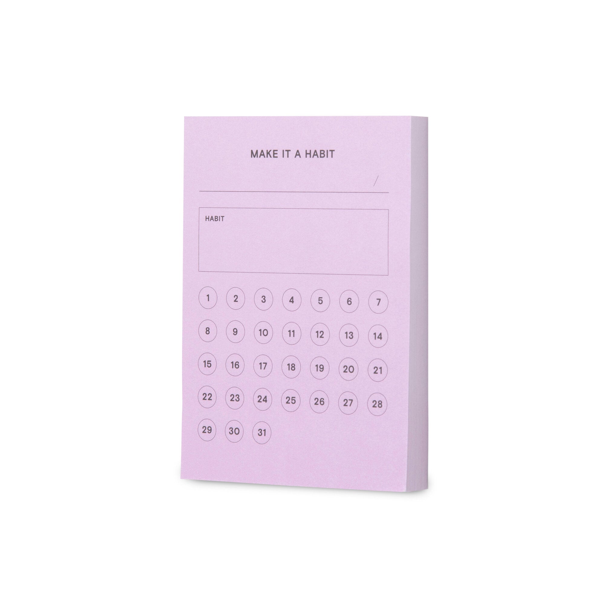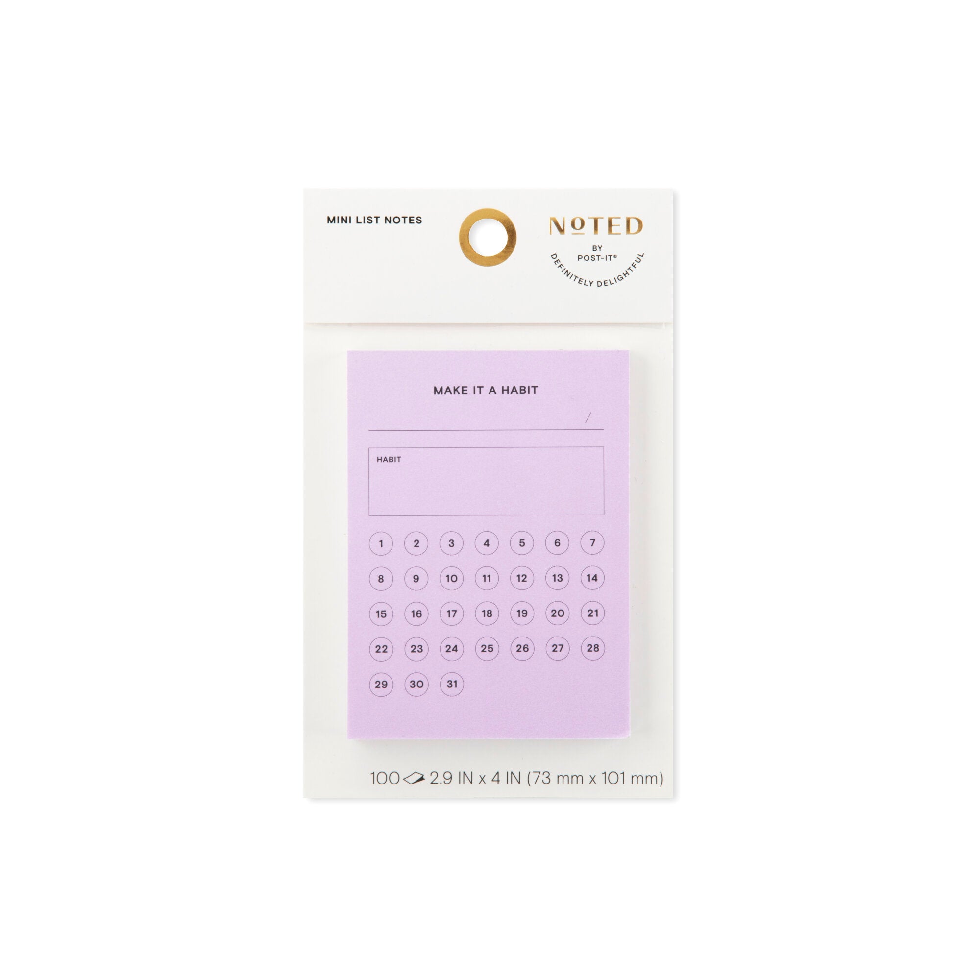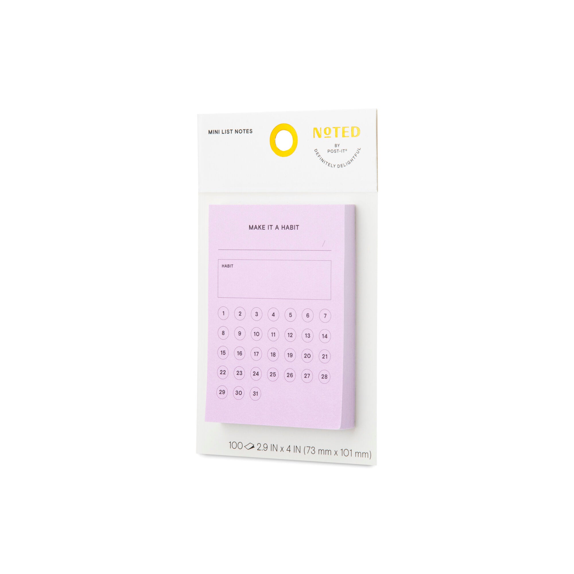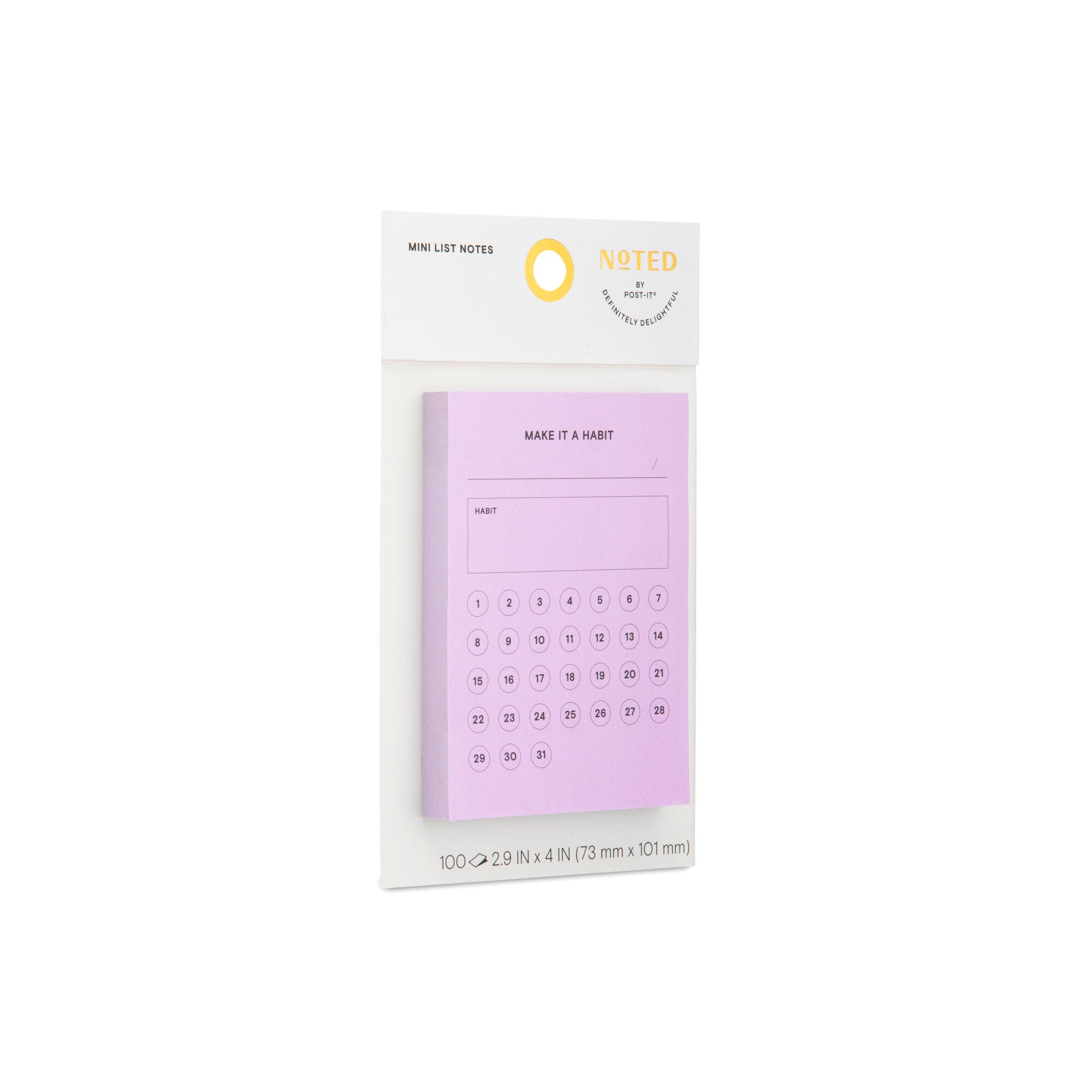 Noted by Post-it, Habit Tracker Notes, Lilac, 2.9 in. x 4 in.Meet Noted by Post-it®, a collection of delightfully designed desktop accessories to help inspire, wrangle and commemorate life’s most notable moments. These lilac 2.9 in. x 4 in. Habit Tracker notes are great to help keep you on track of any new habit you want to make for yourself. Use a Noted pen or planner dots to mark each day you practice self care. Featuring a unique adhesive designed to work on paper, these notes are great for use in planners or on calendars. 1 Pad/Pack, 100 Sheets/Pad. Post-it® Notes are recyclable.