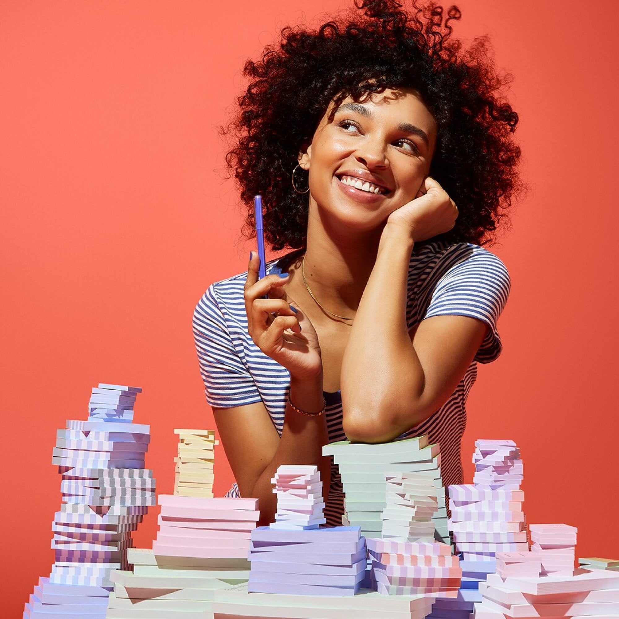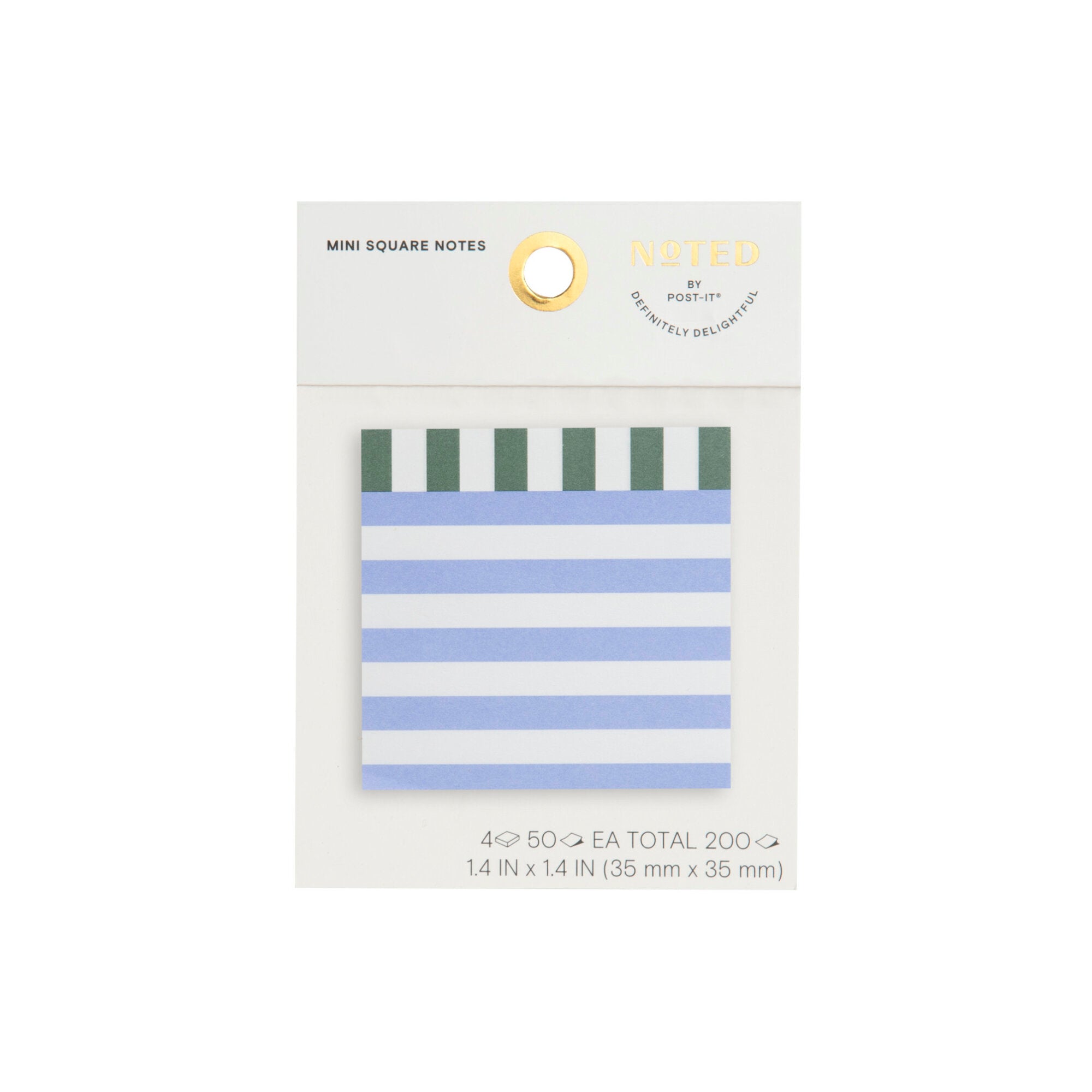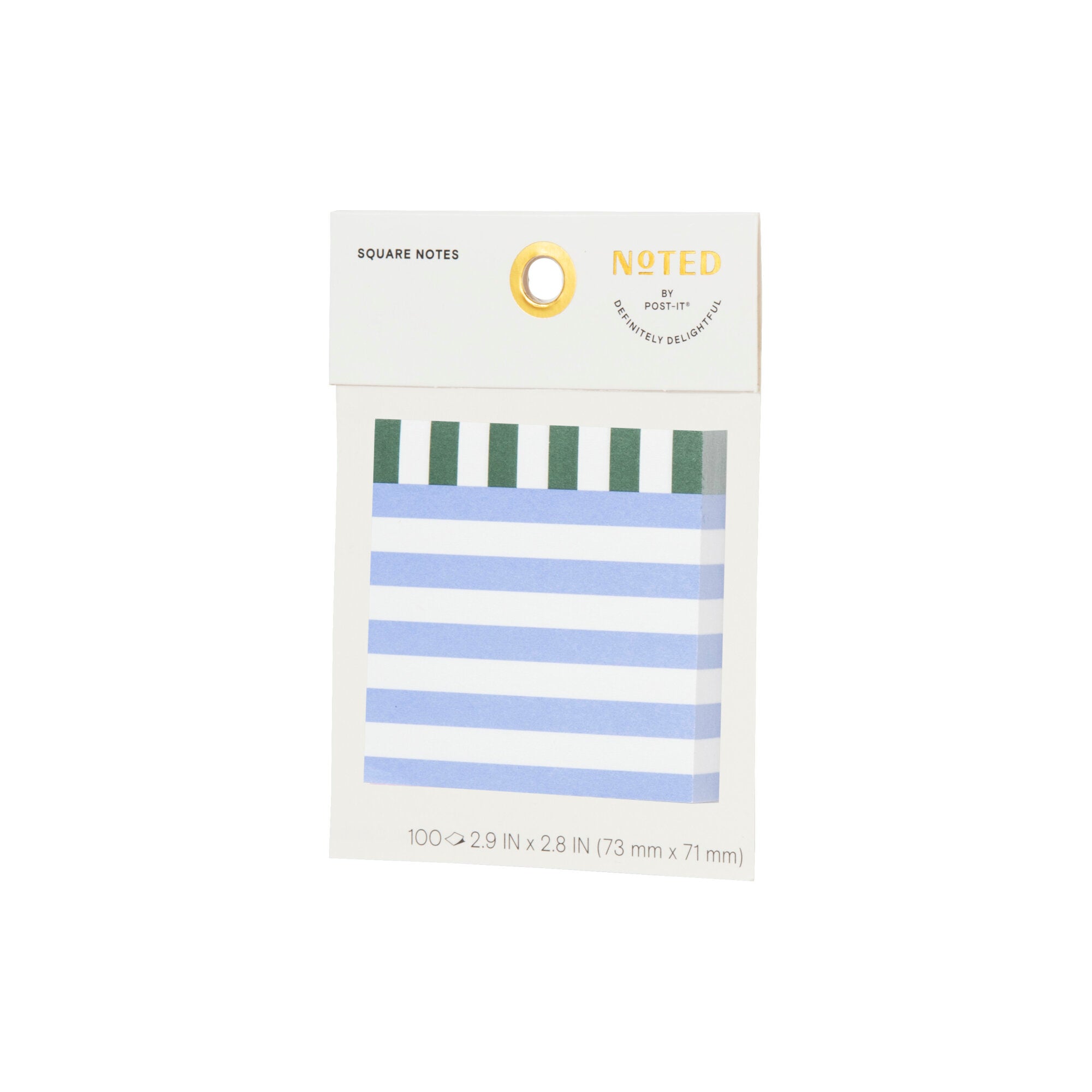 Noted by Post-it Square Notes, 2.9 in. x 2.8 in.Meet Noted by Post-it®, a collection of delightfully designed desktop accessories to help inspire, wrangle and commemorate life’s most notable moments. This square note with a green and white vertical-striped header, and blue and white horizontal-stripes is 2.9 in. x 2.8 in. and will help you slay your to-dos with style. Featuring a unique adhesive designed to work on paper, these notes are great for use in planners or on calendars. 1 Pad/Pack, 100 Sheets/Pad. Post-it® Notes are recyclable.