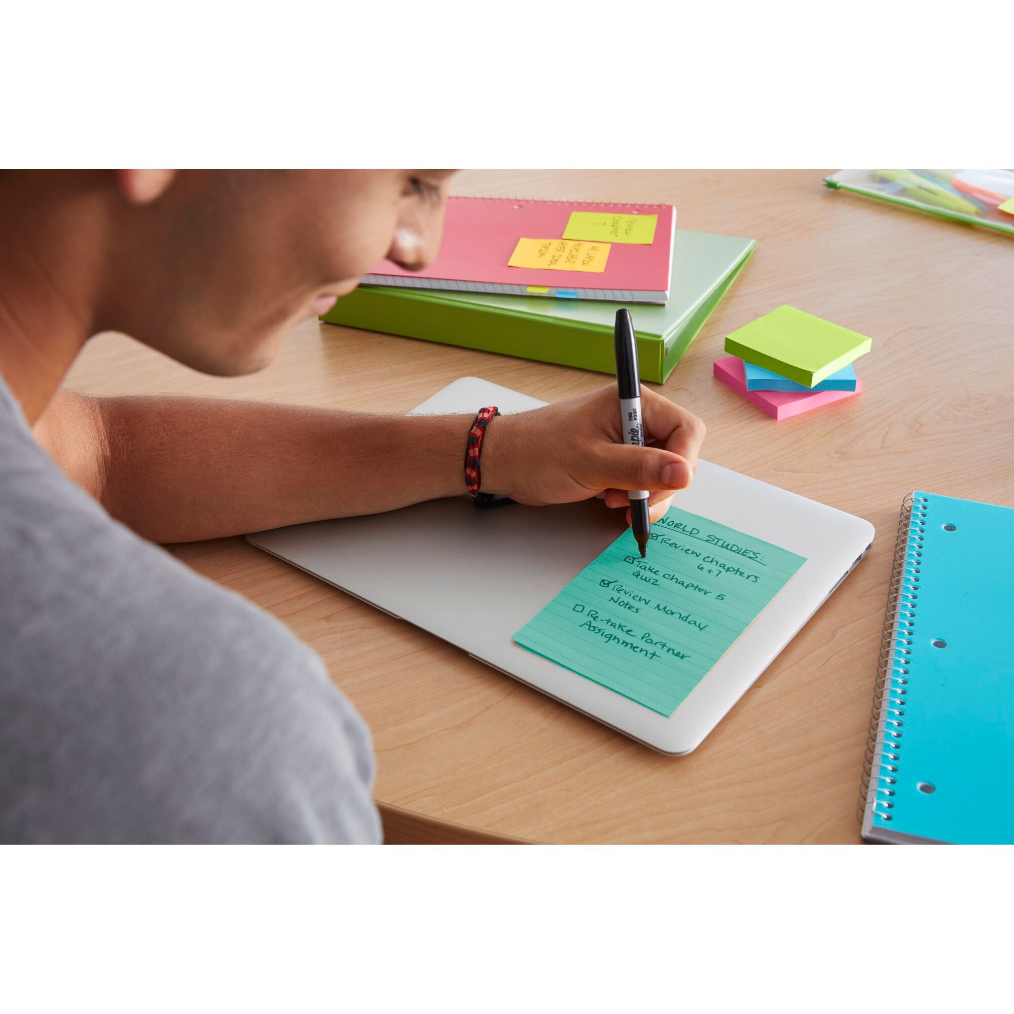 Post-it Super Sticky Notes have 2X the sticking power.Uplift your spirits and messages via the vibrant, strong colors of the Energy Boost collection. Whether jotting down your daily to-do's, brainstorming big ideas, studying or setting reminders, colors and ideas are always brighter together. These sticky notes feature 2X the sticking power. They also stick and re-stick - allowing you to move your notes with you throughout your day. They’re ideal for walls, doors, windows and other vertical surfaces, and like all Post-it Notes, they stick securely yet remove cleanly without damage. Keep your ideas across your notebooks, classroom books, calendars or other documents. No tape or tacks are needed with adhesive notes, saving you money and time on office products or school supplies. A great memo pad, these are ideal for using for notes or reminders to yourself or others. Post-it Super Sticky Notes are the perfect solution for shopping lists, reminders, notes on computer screens, time tracking, to-do lists, marking cables, color-coding documents, reminding kids to do chores, storyboarding, scratch paper and agile processing. Each notes sheet is approximately 4 in. x 6 in., with 90 sheets per pad and 3 sticky note pads per pack. These colorful sticky notes include colors from the Energy Boost collection including orange, pink and green. All Post-it Notes are sourced from certified, renewable and responsibly managed forests, and all Post-it Notes are recyclable, so you can recycle them when they are no longer needed.
