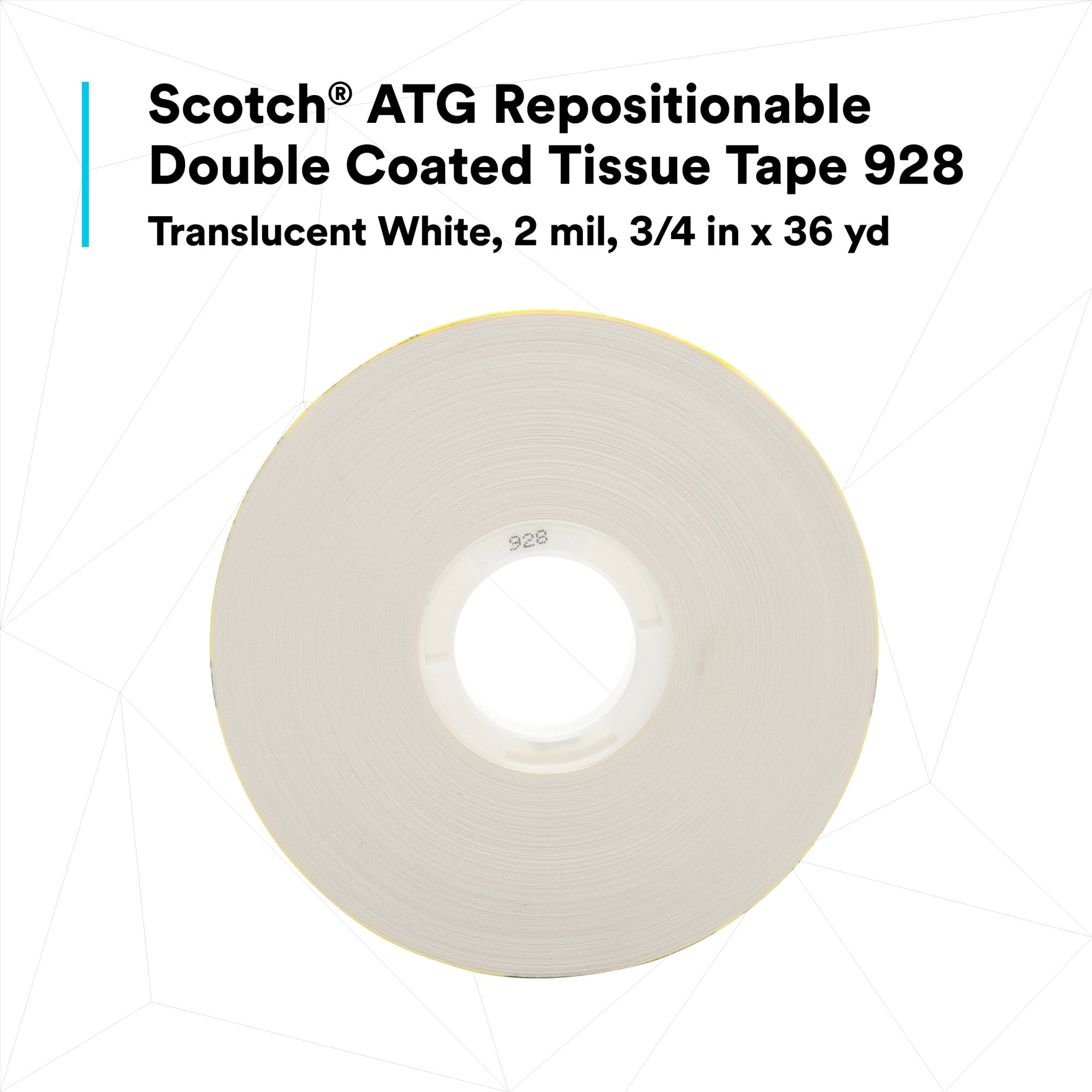 Scotch® ATG Repositionable Double Coated Tissue Tape 928, TranslucentWhite