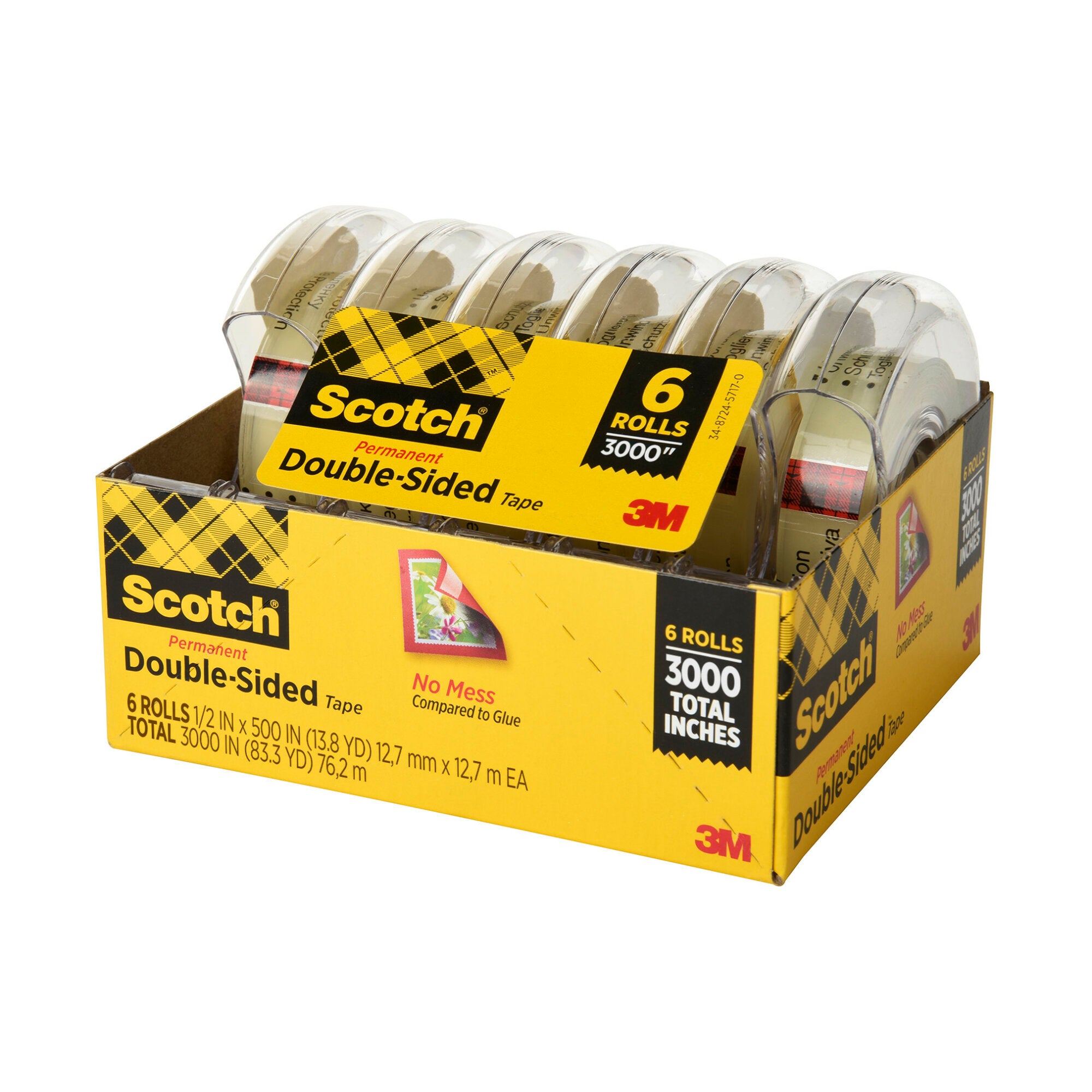 For the light duty attaching you do for activities around the house, get it done fast and get it done right without the drips, clogs and air bubbles of glue. Scotch Double-Sided Tape the neat, clean, strong and long lasting way to take care of school projects, scrapbooks, photo albums all those important presentations that need to come together. Scotch Double-Sided Tape is easy to use and won't create a mess like the way glue does. It glides smoothly off the Scotch Tape dispenser (included), cuts cleanly and right where you want to cut so no waste. For a better way to present all the wonderful things in life.For the light duty attaching you do for activities around the house, get it done fast and get it done right without the drips, clogs and air bubbles of glue. Scotch® Double Sided Tape the neat, clean, strong and long lasting way to take care of school projects, scrapbooks, photo albums all those important presentations that need to come together. Scotch® Double Sided Tape is easy to use and won't create a mess like the way glue does. It smoothly glides off the easy to use Scotch® Tape dispenser (included), cuts cleanly and right where you want to cut so no waste. For a better way to present all the wonderful things in life.