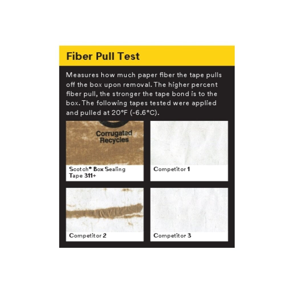 Scotch® High Tack Box Sealing Tape 311+ is engineered to provide excellent adhesion and durability necessary for boxes that are commonly exposed to shipping hazards including cold temperatures. The backing easily conforms around edges and on rough surfaces to provide a lasting hold. With its quick adhesion and durable backing, this sealing tape is built with the features necessary to maintain high performance in extreme environments. Ship confidently with the instant stick and secure hold of Scotch® High Tack Box Sealing Tape 311+.