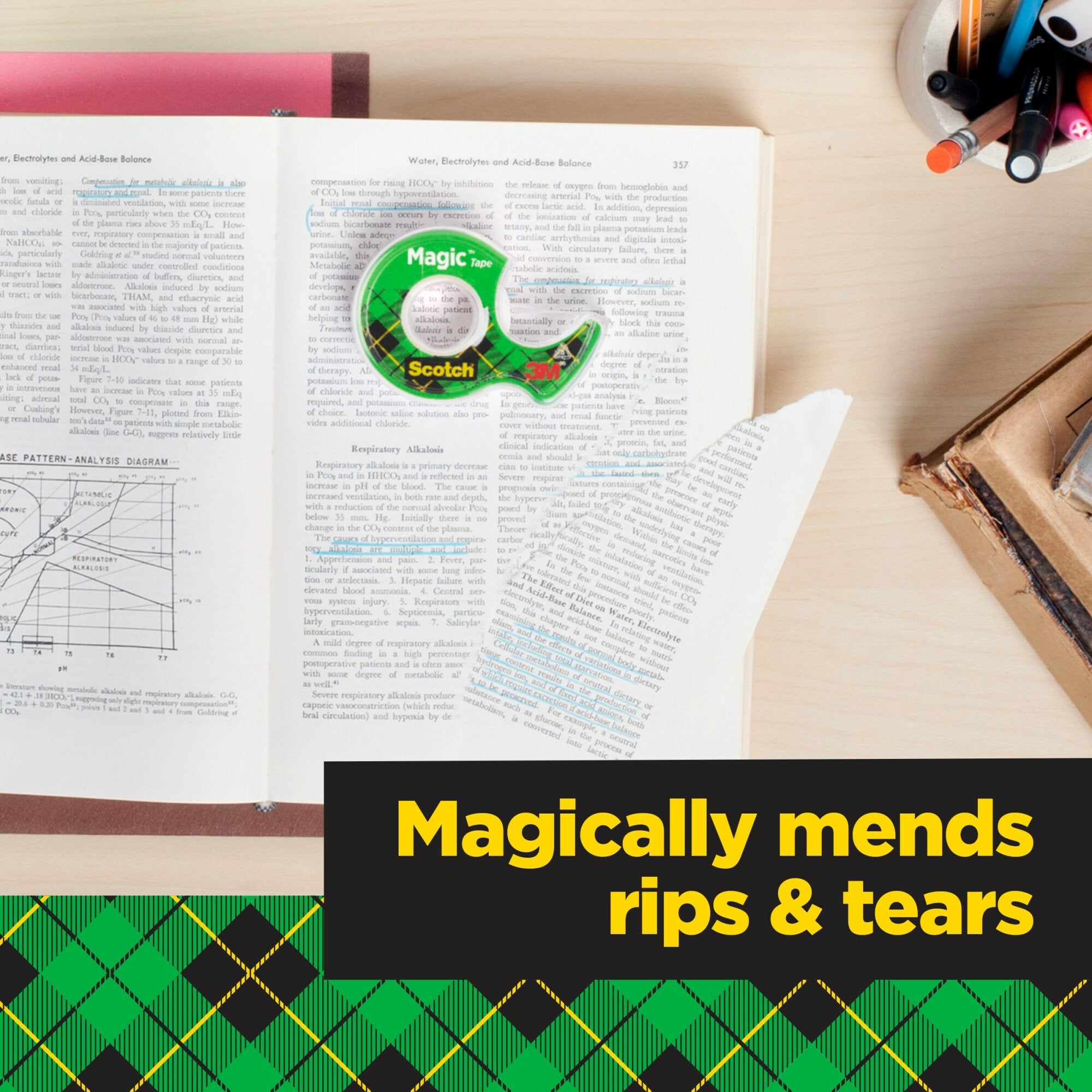 Scotch Magic Tape is the original matte finish, invisible tape. It's the preferred tape for offices, home offices and schools. Write on it with pen, pencil or markerThere's nothing more important than mending original documents like birth certificates, final essays, and special photos. One original deserves another. Scotch® Magic™ Tape is the original invisible matte finish tape preferred by homes, schools and home offices. Why? Because it works like magic: It's invisible! Gives you a strong, secure, permanent seal using trusted 3M adhesive technology. And with our easy to use Scotch® Tape dispenser (included), Scotch® Magic™ Tape rolls out smoothly, cuts evenly with no time, energy or tape wasted. Magically mend the many rips and tears of life securely, permanently, and invisibly.