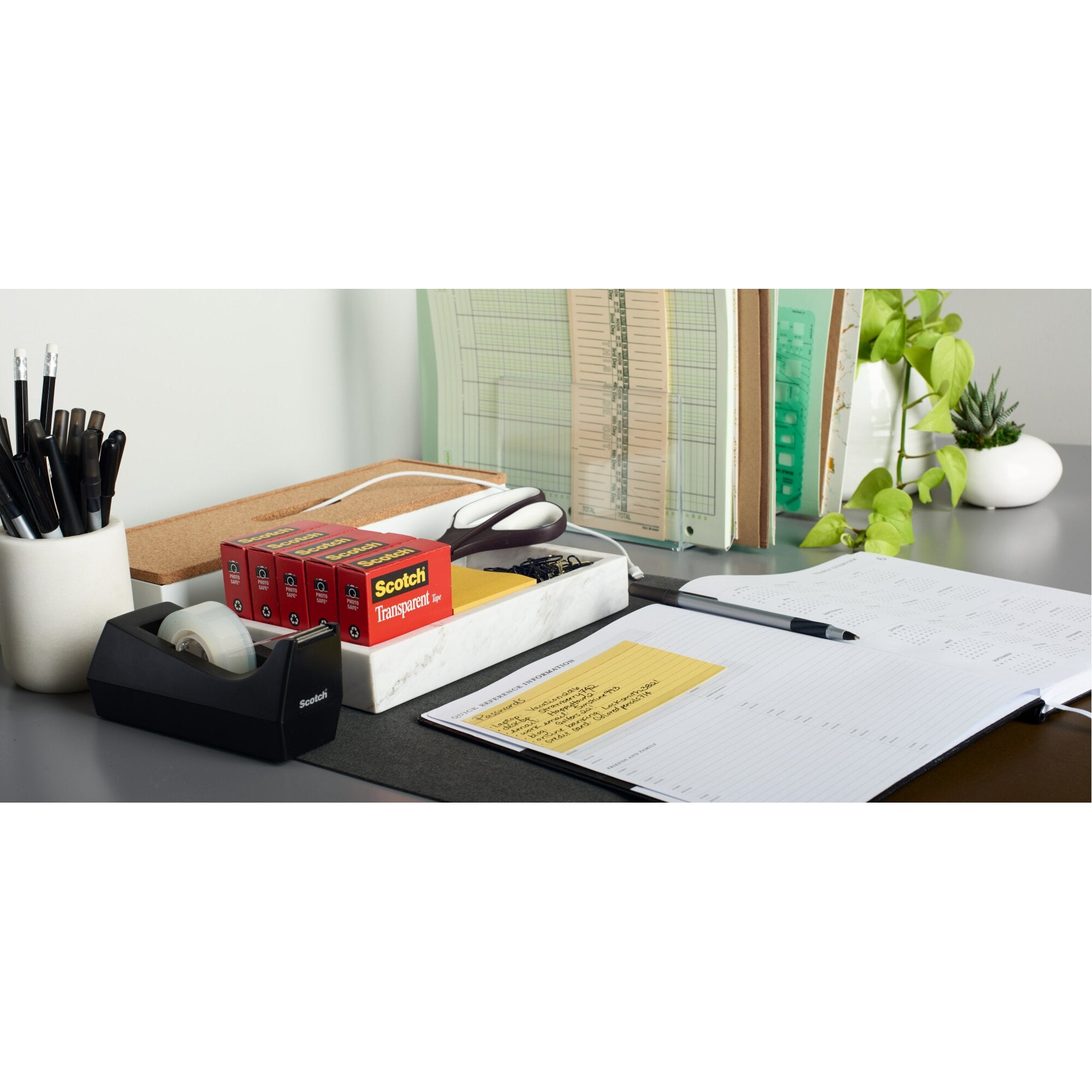 Premium transparent tape with a glossy, high-clarity finish for multi-purpose use. Excellent holding power. Pulls off the roll smoothly and cuts easily. Long-aging, moisture and stain resistant. Great for label protection and light-duty packaging.When you have a million and one things to do, there's one tape to get Scotch® Transparent Tape. It's clearly strong holds things together in an instant; keeps things together for a long time. Clearly multi purpose ideal for all the jobs you need to get done. And clearly...clear using 3M adhesive technology, it goes on transparently and won't yellow with age. Scotch® Transparent Tape Refills fit into all standard dispensers, glide off the roll smoothly, and cut easily without wasted tape. Whatever you need to get done, wherever you are home, work or school Scotch® Transparent Tape Refill Rolls are clearly ready to go to work.