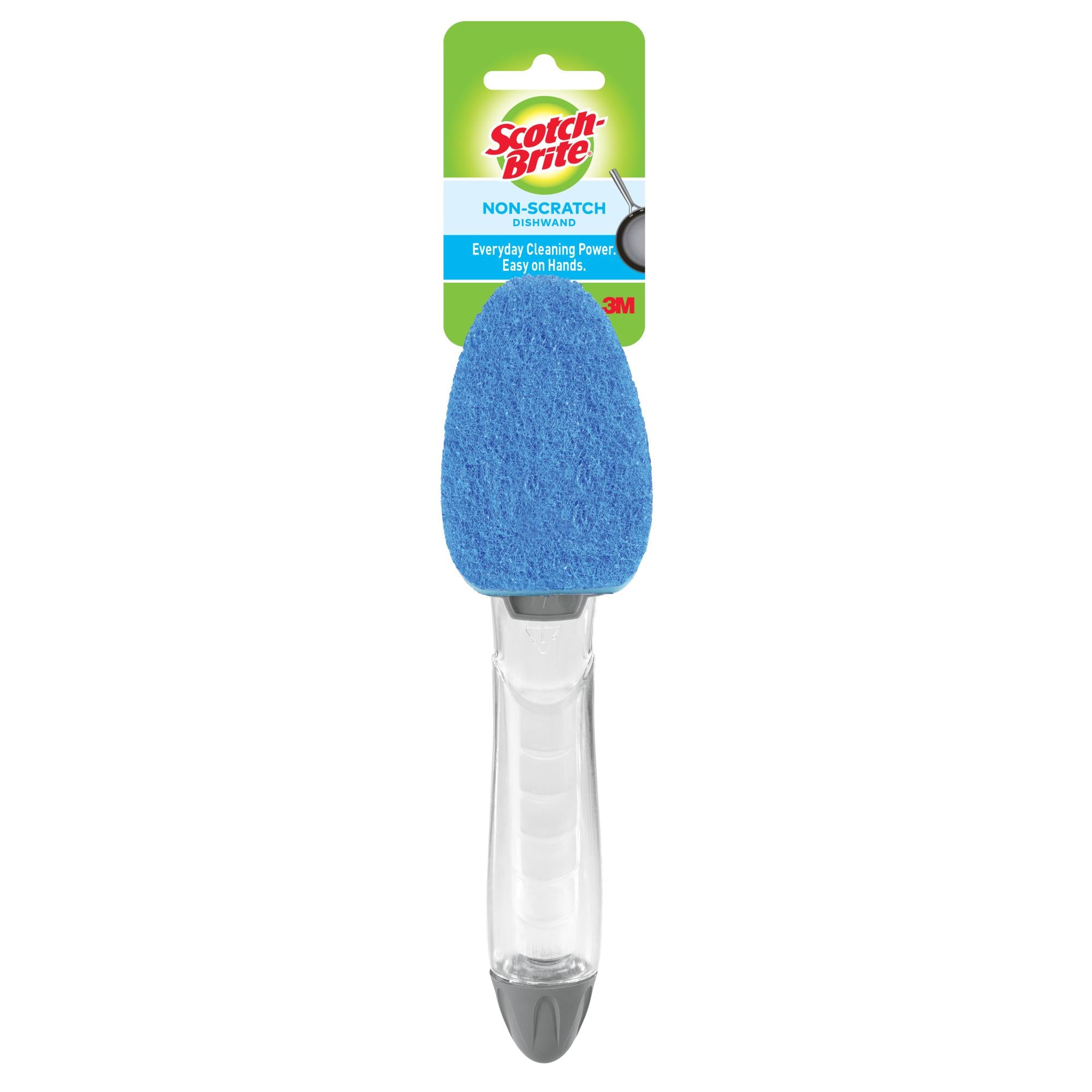 Handheld brushes and scrubbing pads used to clean a variety of surfaces such as toilet bowls, kitchen utensils, tile, and grills.With the Scotch-Brite Non Scratch Dishwand you think you are in a fairytale come true. Your non stick pots and pans will sparkle and thanks to the dish wand your hands will be out of the mess! Fill it up with your favorite dish soap and effortlessly wipe away grease and grime. Thanks to the teardrop shape and scouring pad, you can get into all the corners, nooks and crannies. The scrubbing head refills are easy to replace.