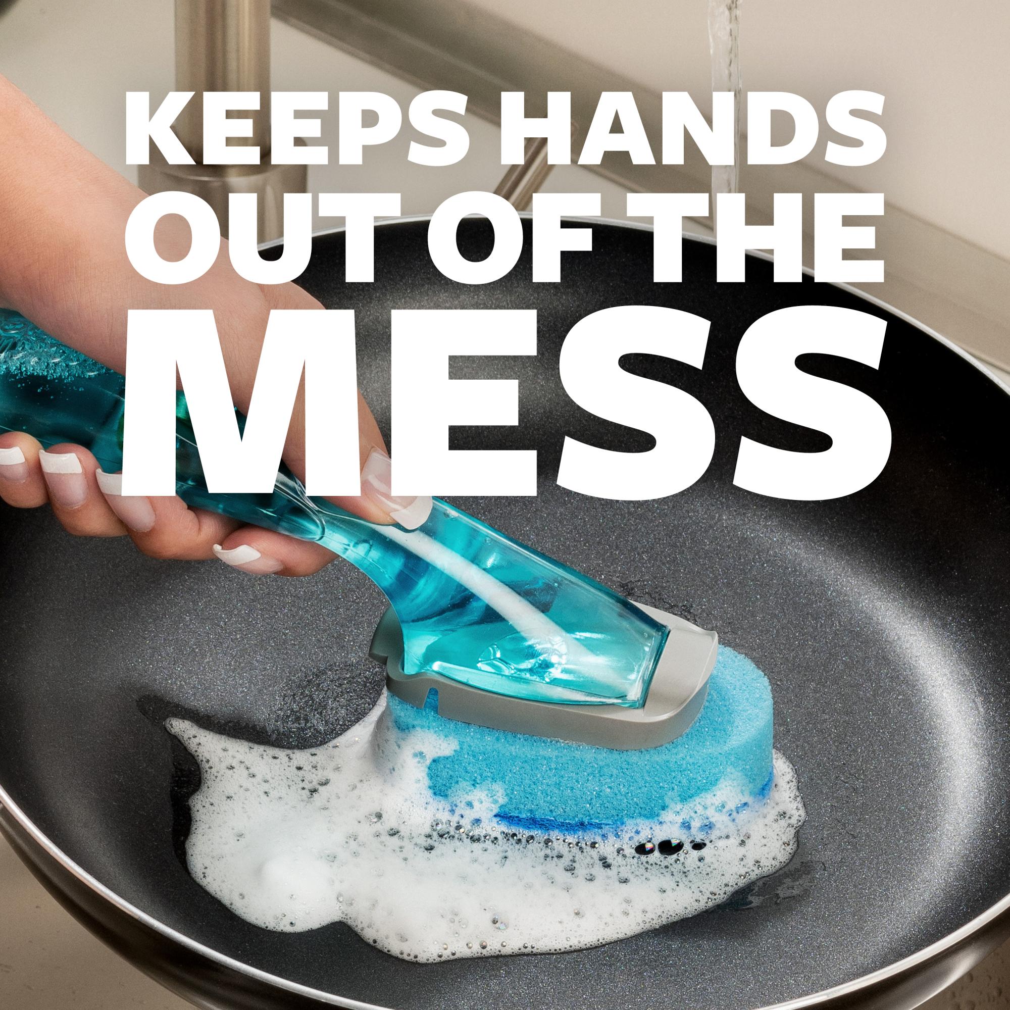 • Fill it up with your favorite dish soap and effortlessly wipe away grease and grime
