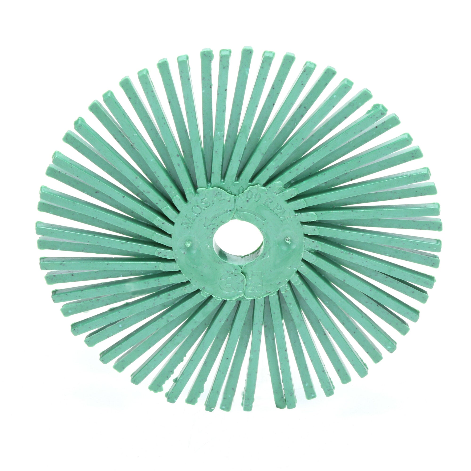 Scotch-Brite Radial Bristle Disc, using proprietary 3M Ceramic Abrasive Grain and molded, flexible bristles, provides more surface contact than wire brushes and maintains abrasive property throughout the life of the disc. This fast-running disc removes paint, stains, adhesives, weld burns, rust, heavy oxides, and surface contaminants from large areas.Under normal use, the flexible bristles on our Scotch-Brite™ Radial Bristle Disc remain safely in place and can achieve the desired finish using light pressure. We designed our disc to last longer than wire and other abrasive discs and works well on aluminum, brass, bronze, carbon steel, cast iron, stainless steel, and other metals; and is used for general industrial, aerospace, automotive, metalworking, transportation, and automotive applications.