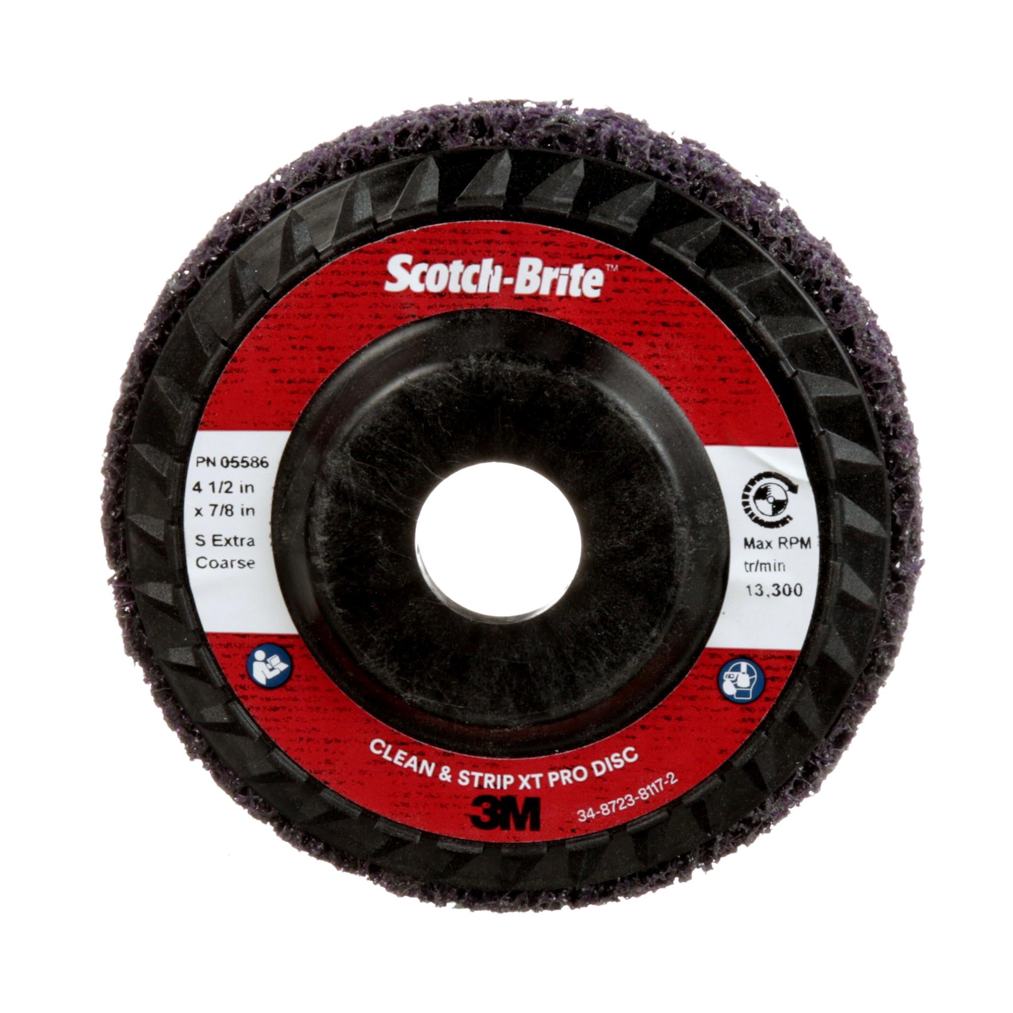 Scotch-Brite Clean and Strip XT Pro Disc features silicon carbide abrasive mineral incorporated into an open nylon web. It effectively removes rust, paint, mill scale, coatings and adhesives from surfaces without significantly altering the base material. The high-strength fibers are highly conformable, resist chunking and loading, and perform well on the edges of a workpiece.Take Advantage of High Conformability