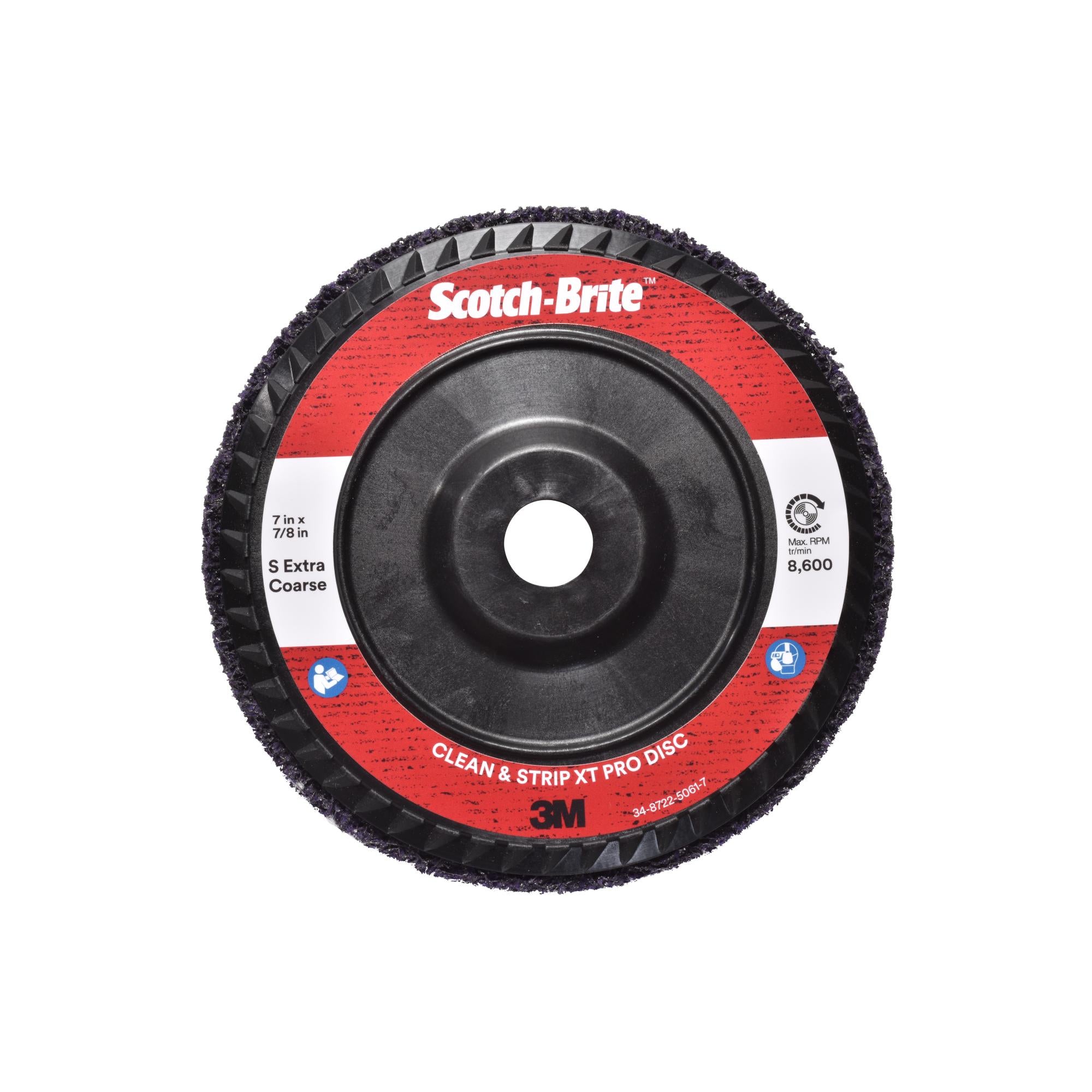 Scotch-Brite Clean and Strip XT Pro Disc features silicon carbide abrasive mineral incorporated into an open nylon web. It effectively removes rust, paint, mill scale, coatings and adhesives from surfaces without significantly altering the base material. The high-strength fibers are highly conformable, resist chunking and loading, and perform well on the edges of a workpiece.Take Advantage of High Conformability