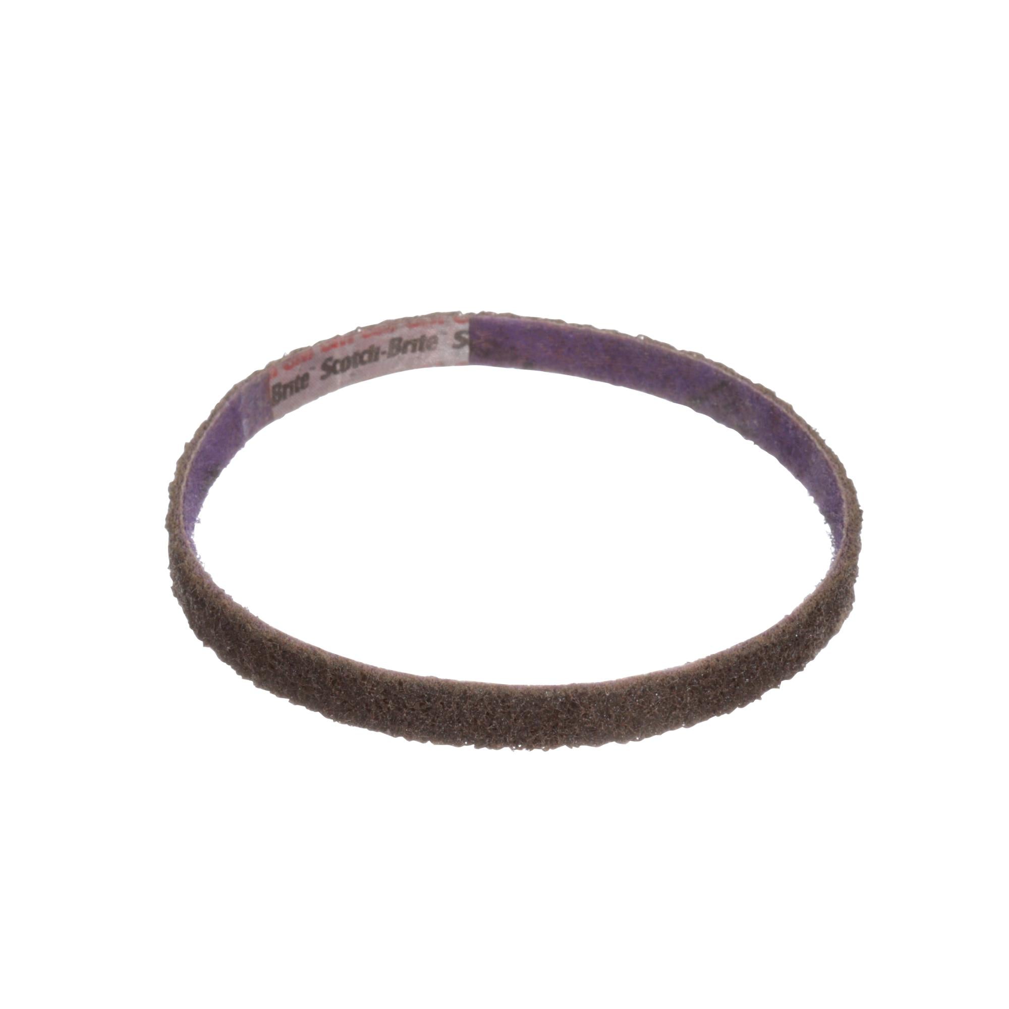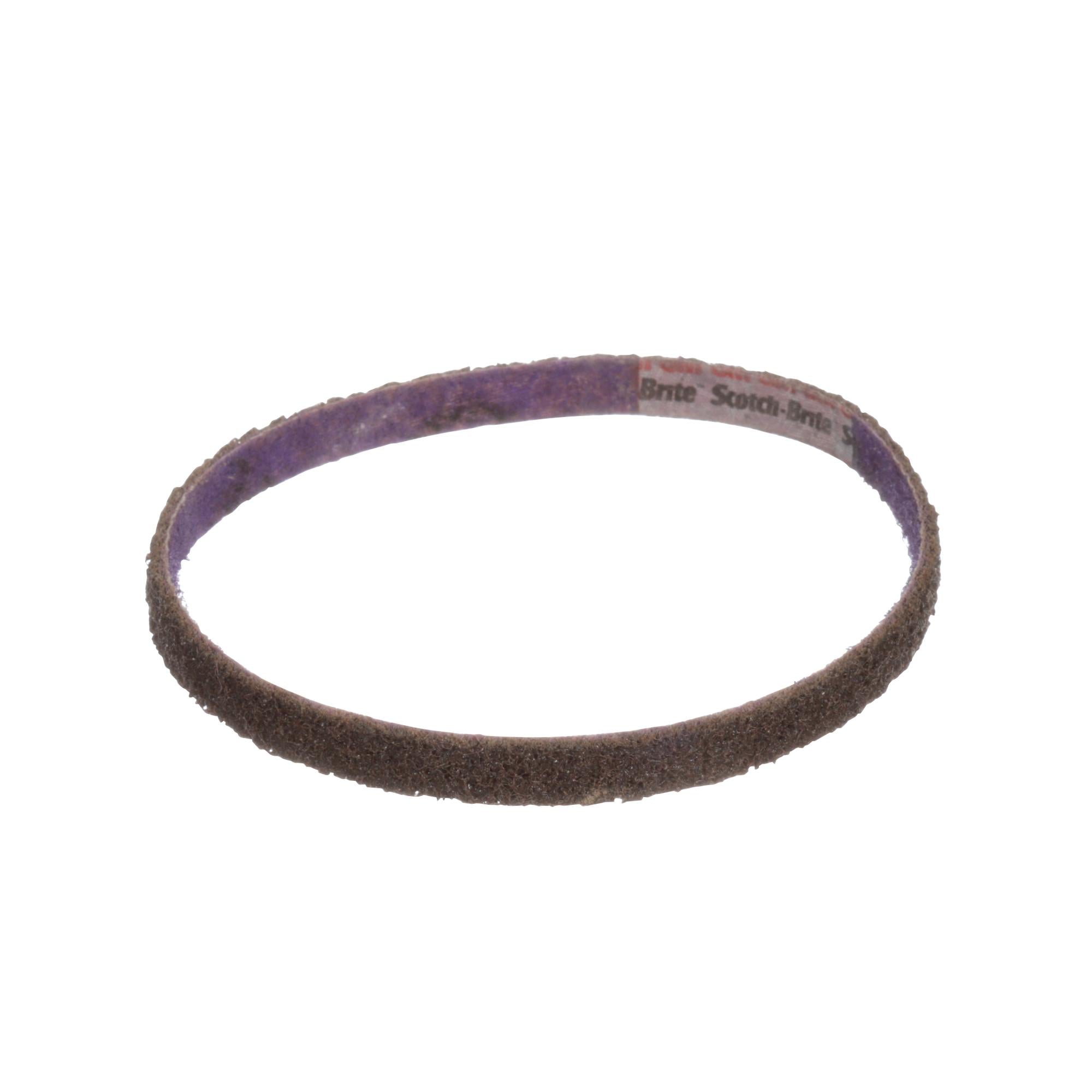 The nonwoven fiber material runs cool, resists loading, and holds up to edge work, while aluminum oxide abrasives provide effective cutting action that produces consistent finishing performance on stainless steel, aluminum and carbon steel over the life of the belt. All of our Scotch-Brite™ Durable Flex Belts can be distinguished by their purple backing.